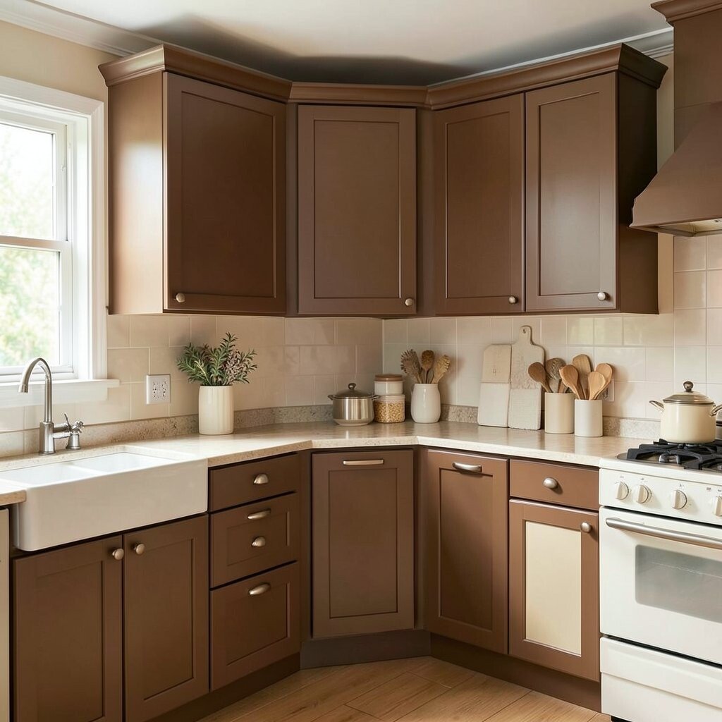 Cocoa brown offers a warm, earthy feel. It’s perfect for creating a cozy, inviting kitchen. This color adds depth and richness to your space.