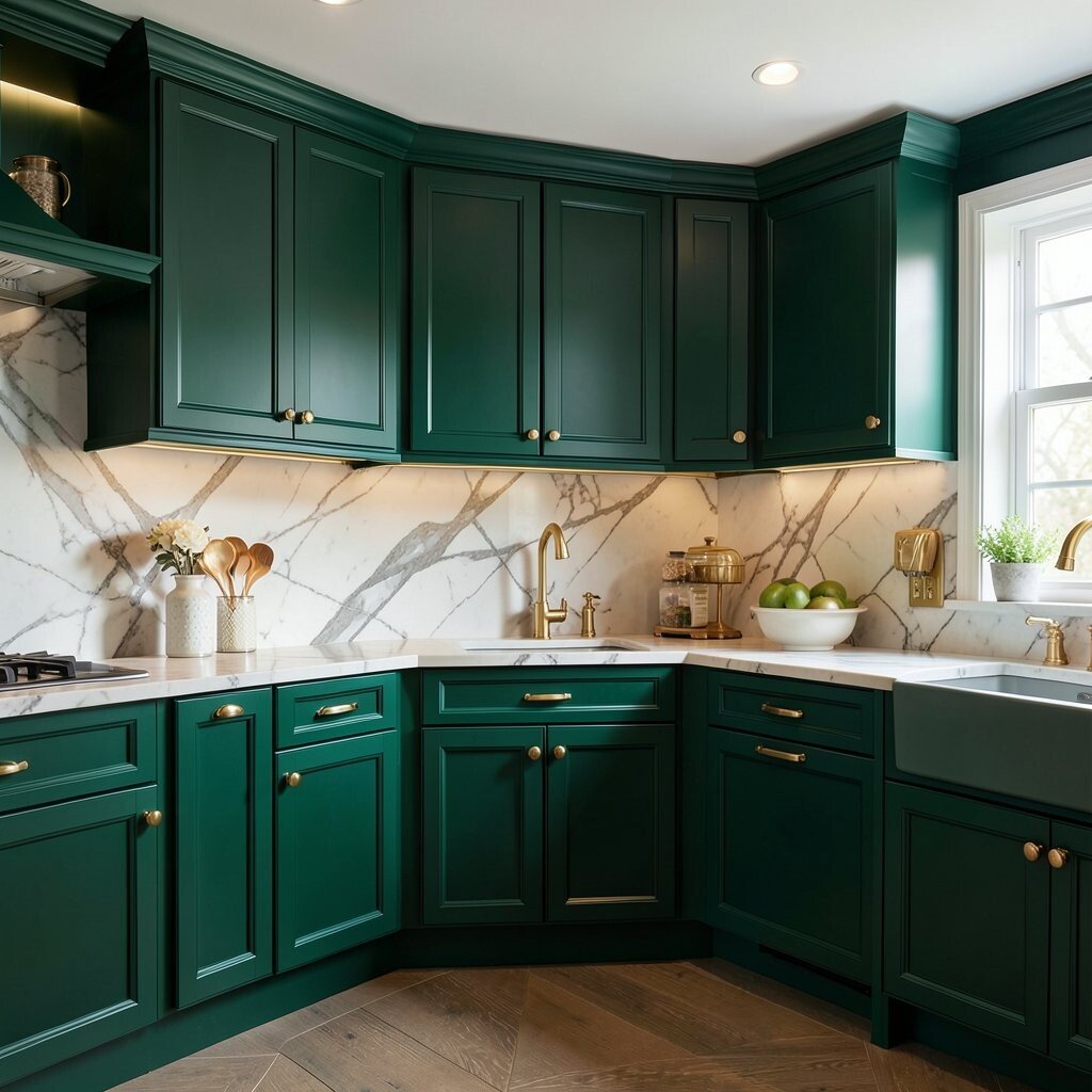 Emerald green is rich and luxurious. It adds a touch of elegance and sophistication to your kitchen. This color is perfect for making a bold statement.