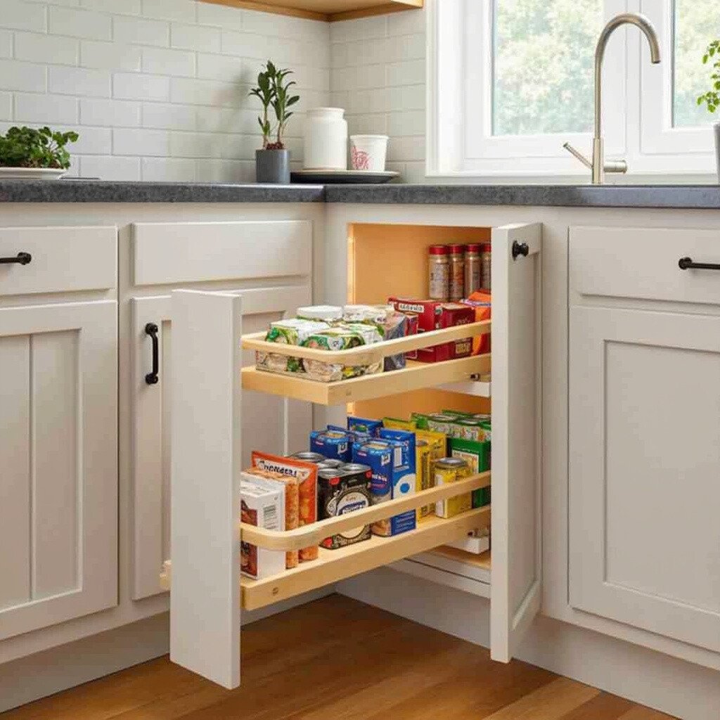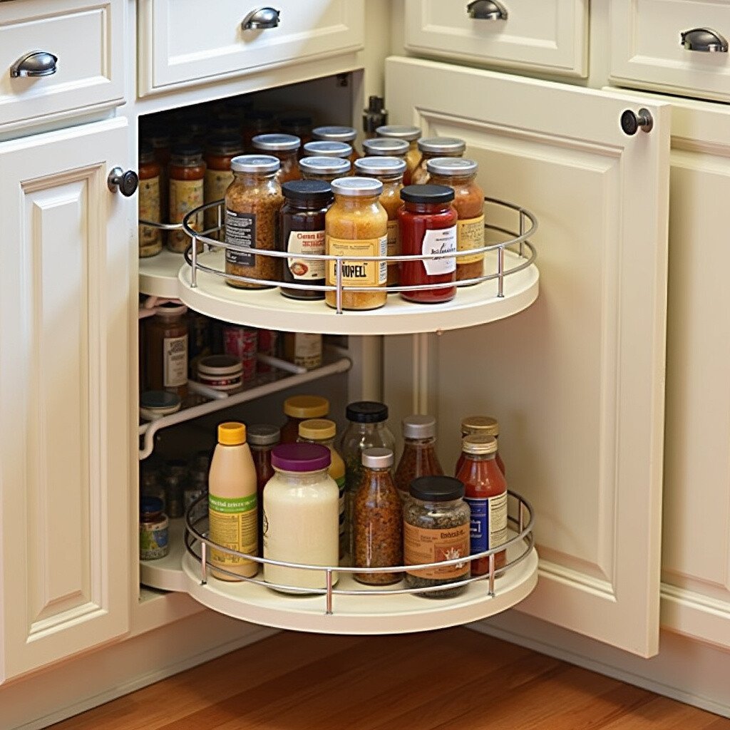 Spin your way to an organized kitchen with a Lazy Susan cabinet. These rotating shelves turn wasted corner space into a storage haven. It’s like a dance floor for your condiments and jars!