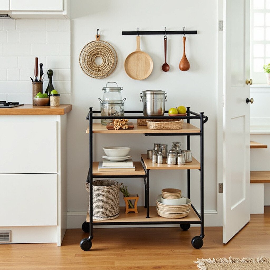 A rolling cart is like having a helper that goes wherever you need. It’s perfect for adding extra storage or creating a mobile coffee bar. With options in metal, wood, and vibrant colors, it can fit any style.