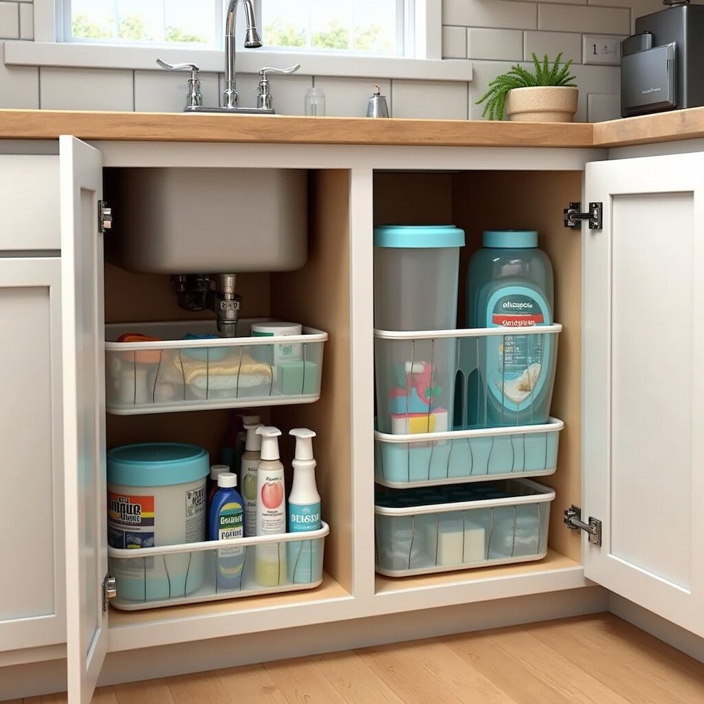 Choose stackable bins or adjustable racks for maximum flexibility. You’ll never lose another sponge again! Costing around $30, it’s a budget-friendly way to reclaim this often-overlooked space.