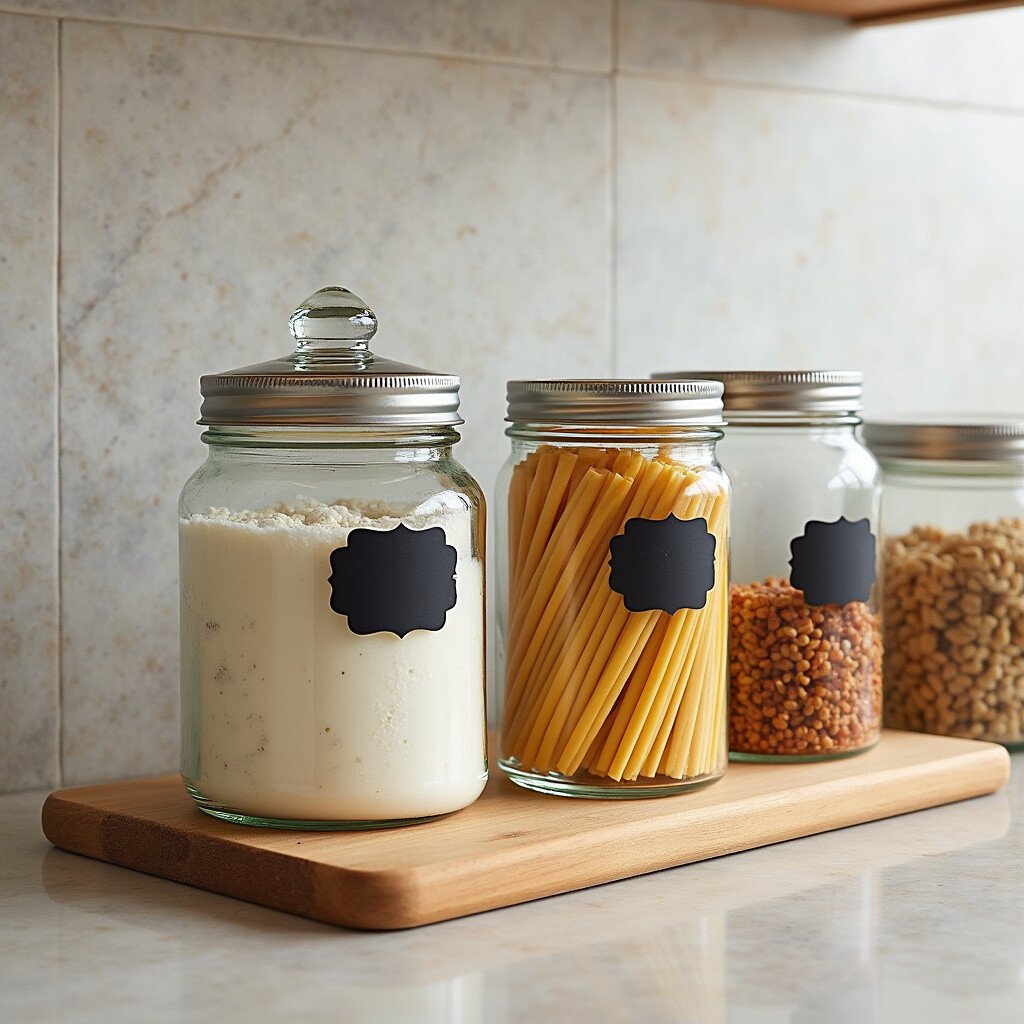Chalkboard labels turn ordinary jars into a playful organization game. Label everything from flour to pasta with these reusable tags. They add a touch of whimsy and are perfect for those who like to experiment in the kitchen.