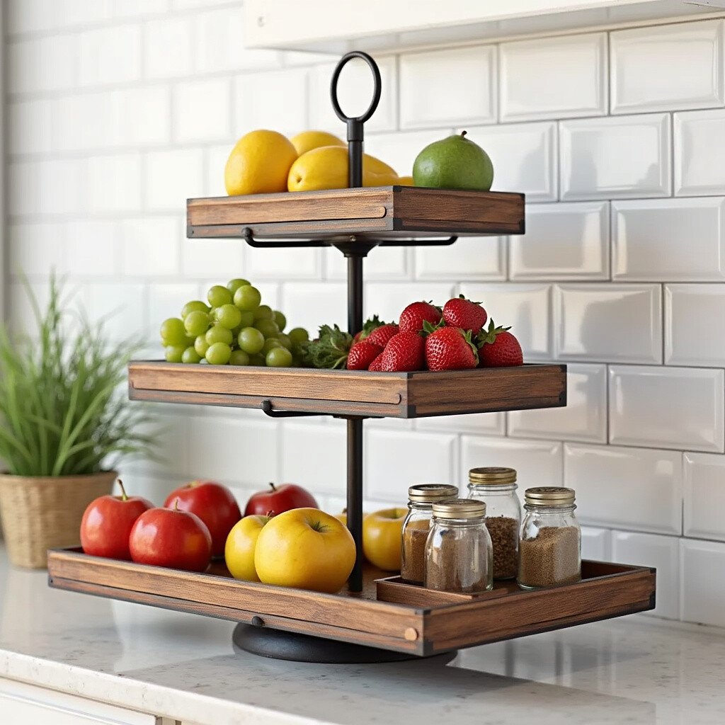 For those who love layers of beauty and function, a tiered countertop organizer is the way to go. It’s perfect for holding fruits, spices, or even coffee supplies. The tiers create a visual delight while saving space.