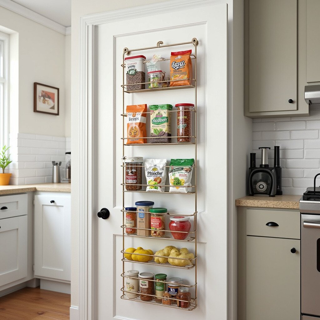 Make the most of your door space with an over-the-door rack. It’s perfect for storing everything from spices to snacks, freeing up precious cabinet space. This idea is as practical as it is easy to install.