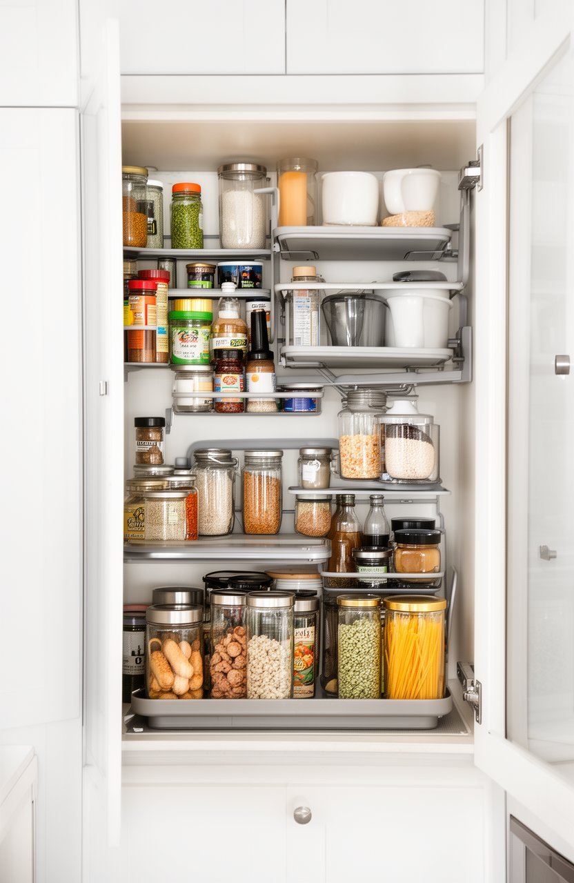 Pull-out pantry shelves are like a secret world hidden in your cabinets. They give you the convenience of a mini-pantry without needing extra space. The shelves glide out smoothly, making it easy to see what you have and what you need.
