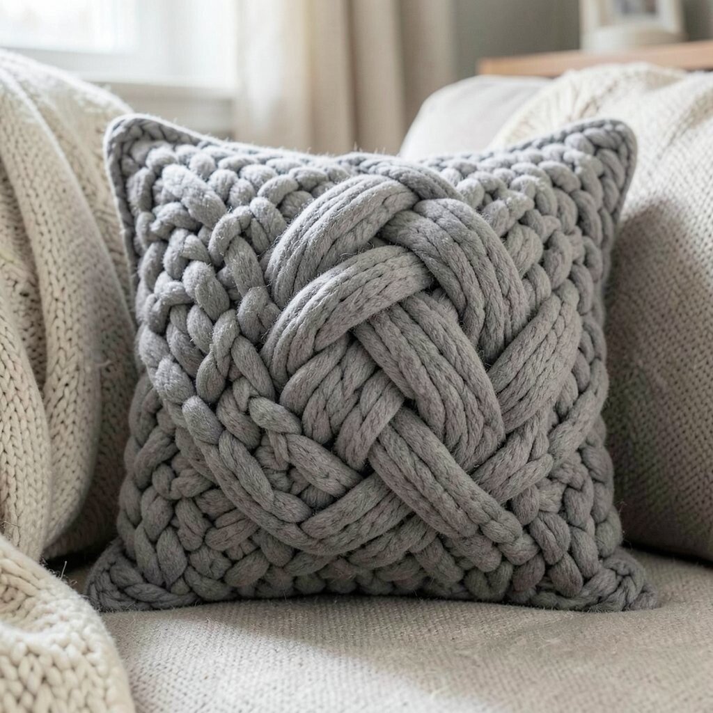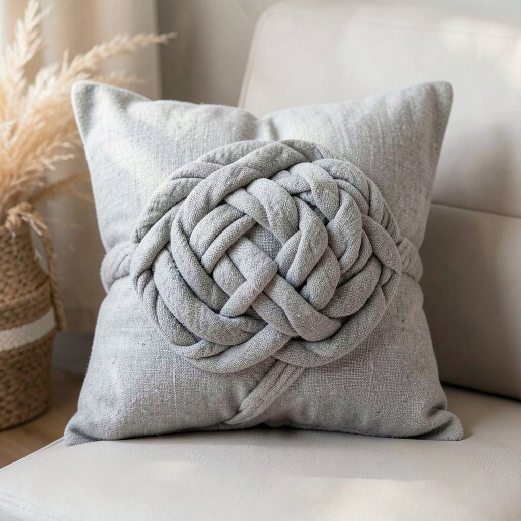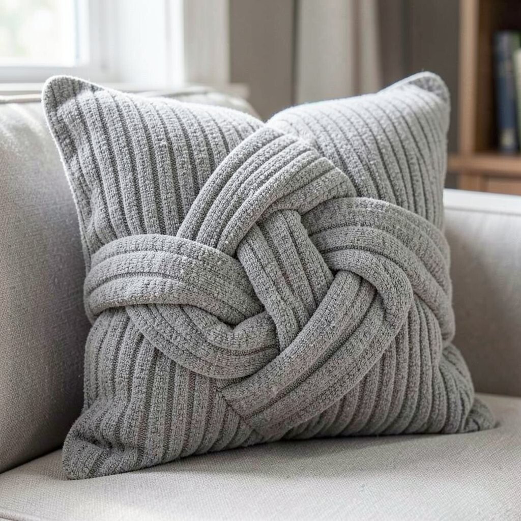 Imagine a pillow that feels like your favorite cozy sweater. A chunky knit knot pillow is all about warmth and texture. Use thick, grey yarn to craft a pillow that invites you to snuggle up.