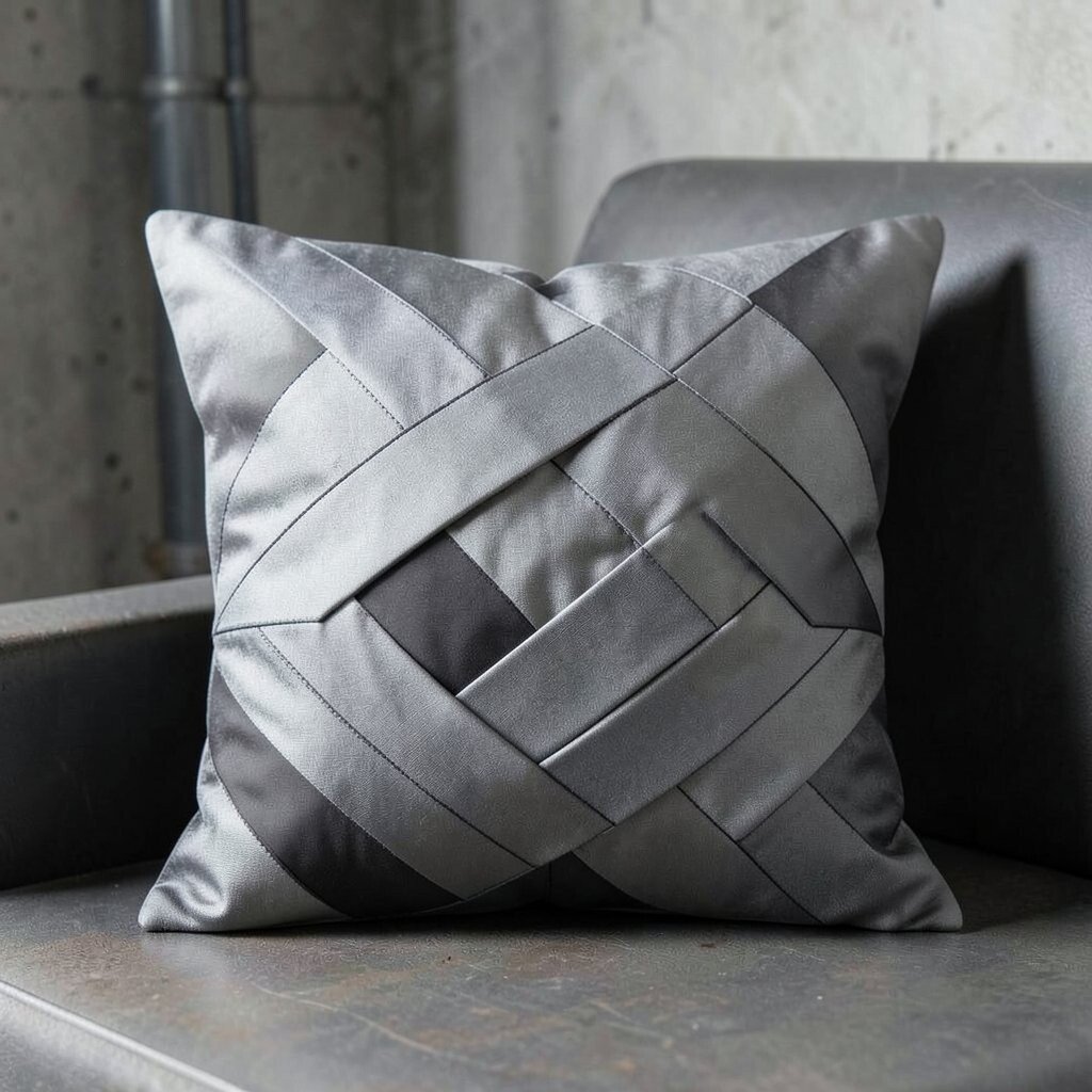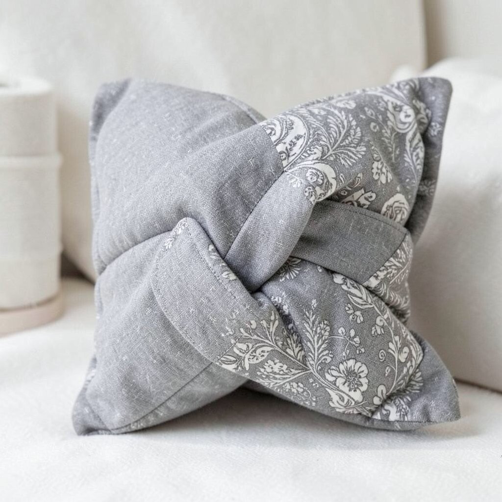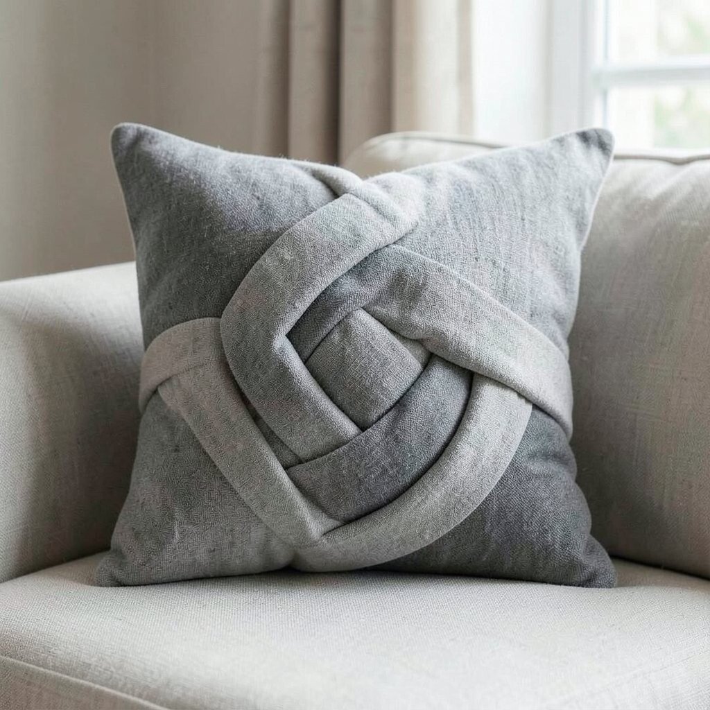 For a modern twist, try a geometric knot pillow. This design features angular shapes and lines, giving it a contemporary feel. Use grey fabric to keep it sleek and stylish.