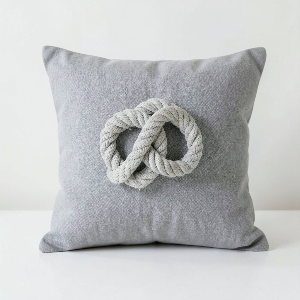 Start with the timeless appeal of a classic rope knot. This design is all about simplicity and charm. Use soft, grey fabric to create a pillow that resembles a sailor’s knot.