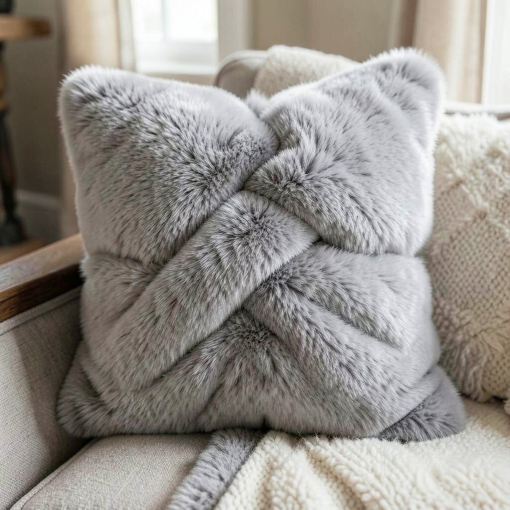Bring a touch of luxury to your space with a faux fur knot pillow. The soft, fluffy texture of faux fur creates a plush and inviting pillow. Use grey faux fur for a cozy yet chic look.