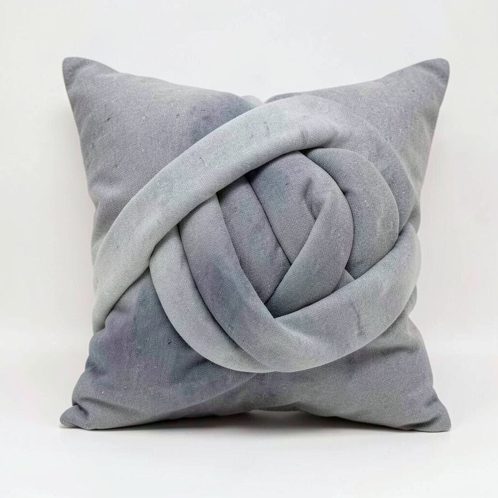 Mix things up with a two-tone knot pillow. Use two shades of grey to create a pillow with a striking color contrast. The dual-color effect adds visual interest and depth.