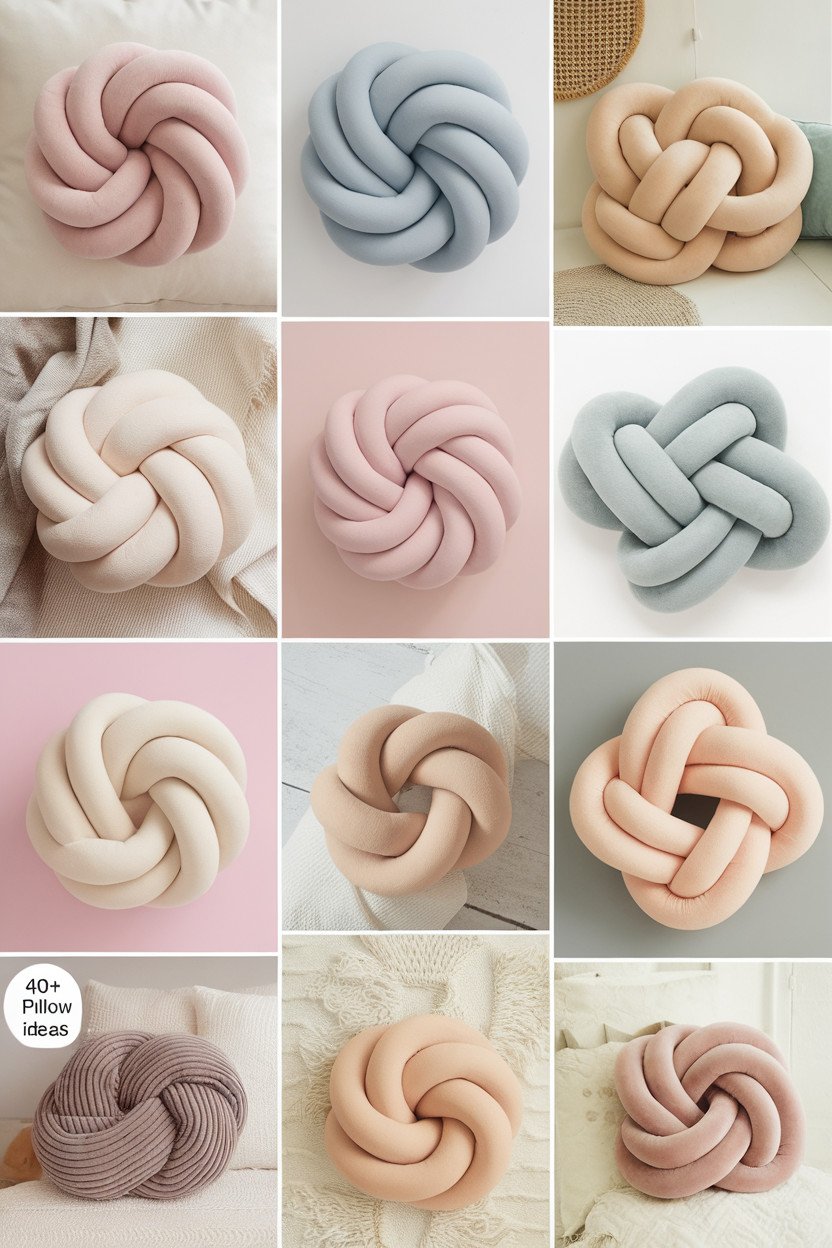 Pastel knot pillows offer a soft, calming look. Think gentle pinks, blues, or greens. Perfect for a serene, peaceful space.