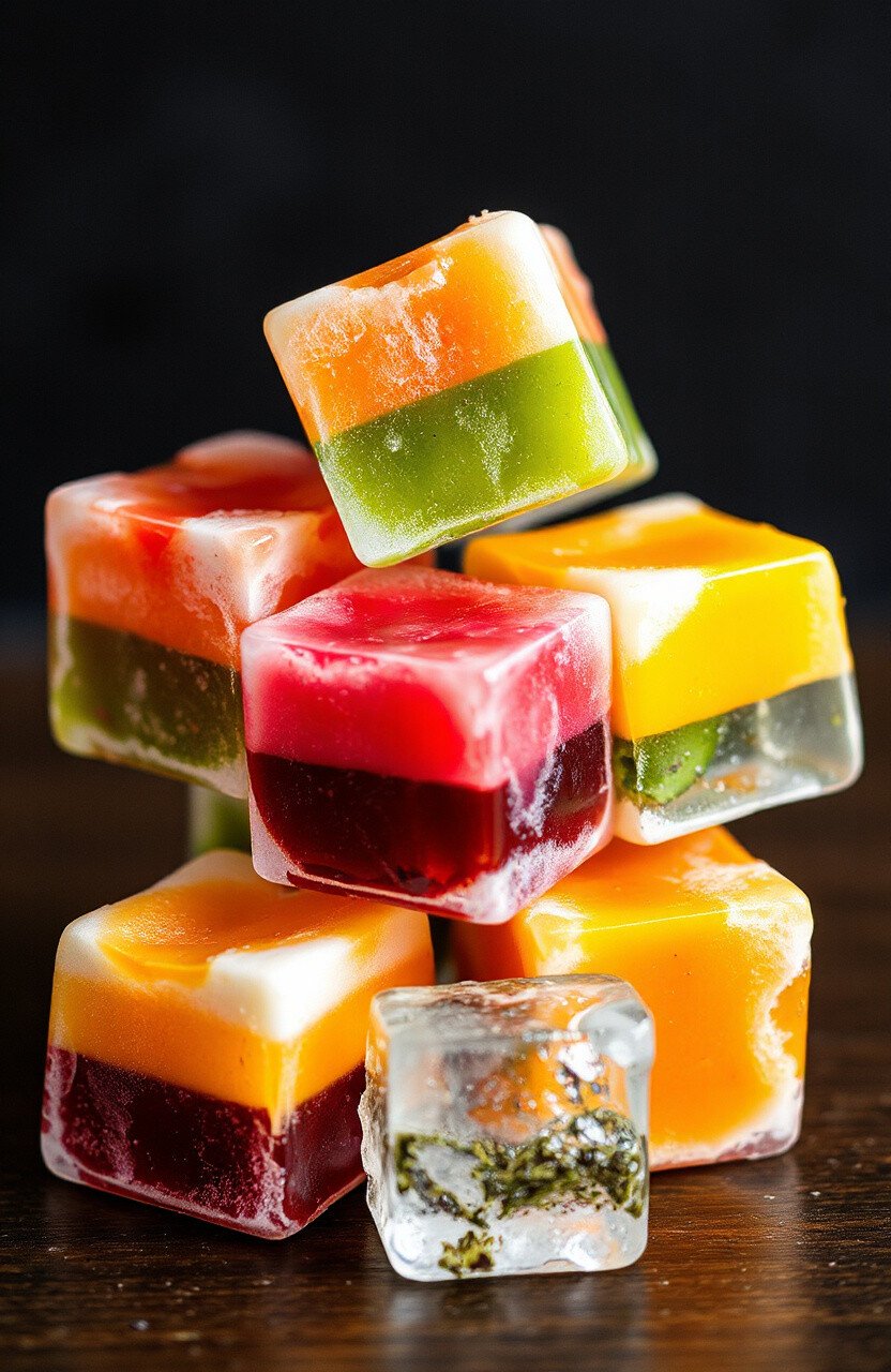 Make your drinks extra special with layered ice cubes. Freeze different colored juices or herbs in layers for a fun twist.