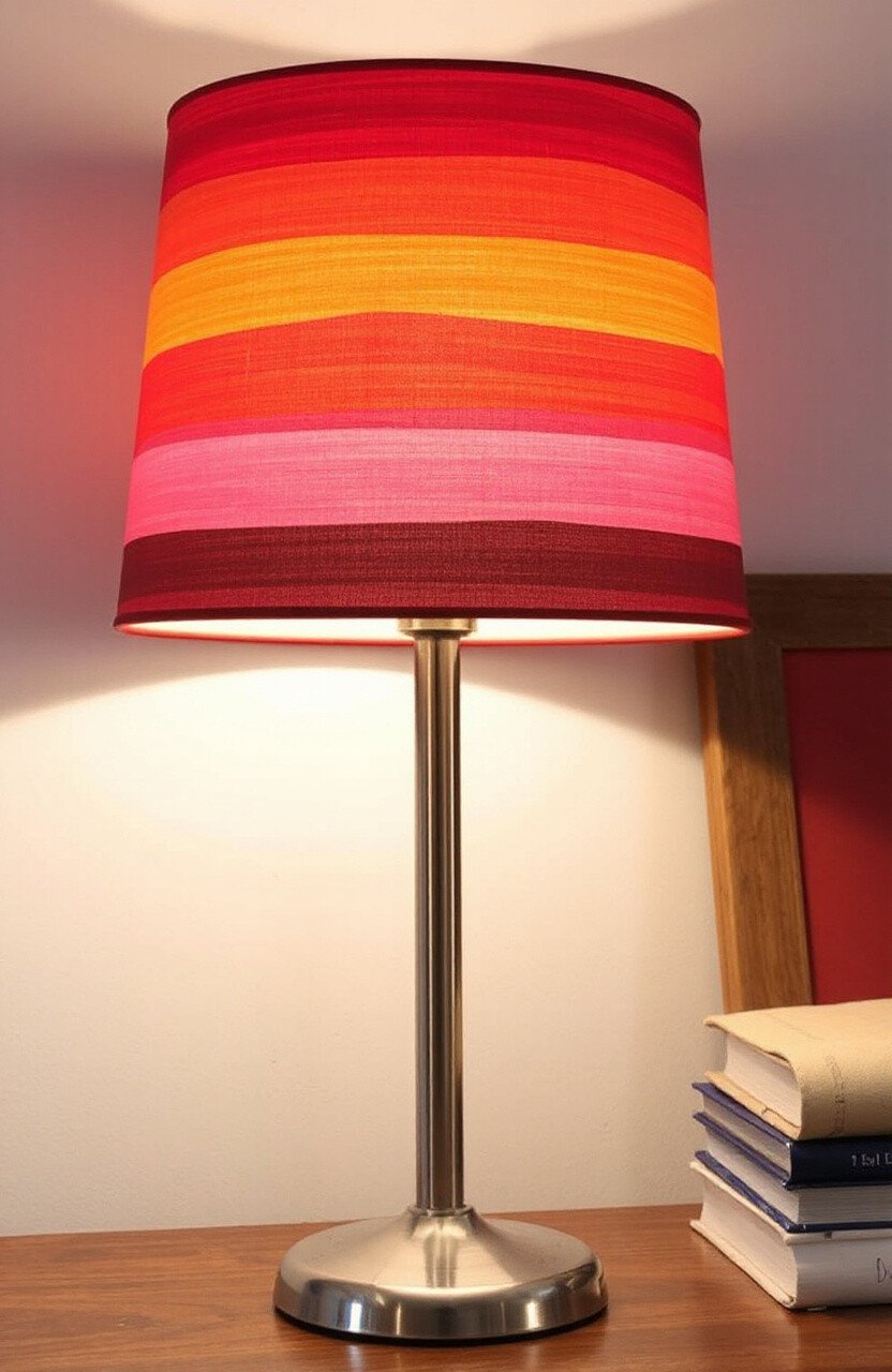 Transform a plain lampshade with layers of color. Start with a base color, then add stripes or patterns. When the light shines through, it creates a warm, colorful glow.