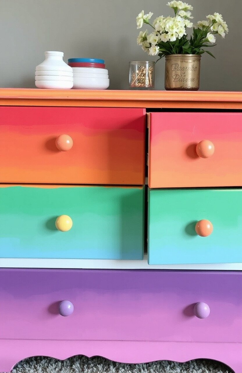 Why settle for a plain dresser when you can have a rainbow one? Layer different colors on each drawer to create a piece that shines. It’s like having a piece of the sky right in your bedroom.