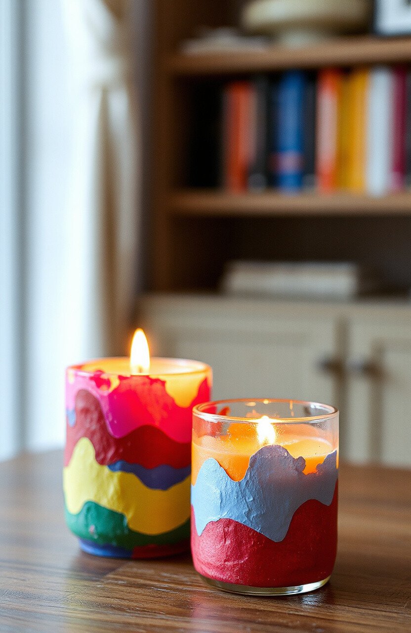 Layer paint on candle holders for a burst of color. The flickering light adds to the effect. Perfect for creating a cozy atmosphere.