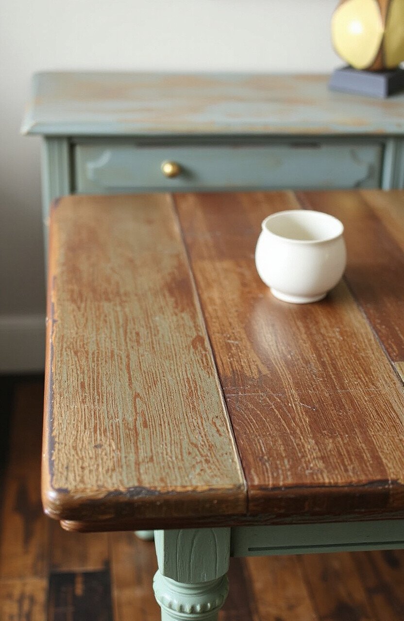 Add layers of paint and texture to an old table. Use tools like sponges or combs to create patterns. This gives an old piece of furniture a new lease on life.