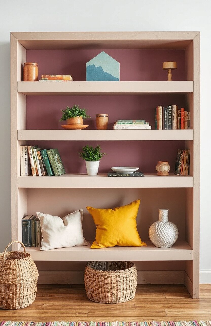 Add layers of paint in different colors to your bookshelf. The bohemian style adds a relaxed, artistic vibe. Perfect for book lovers.