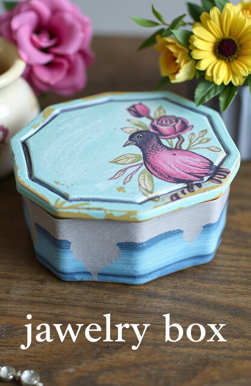 Transform a plain jewelry box with layers of paint. It adds a touch of color and charm. Perfect for storing your treasures.