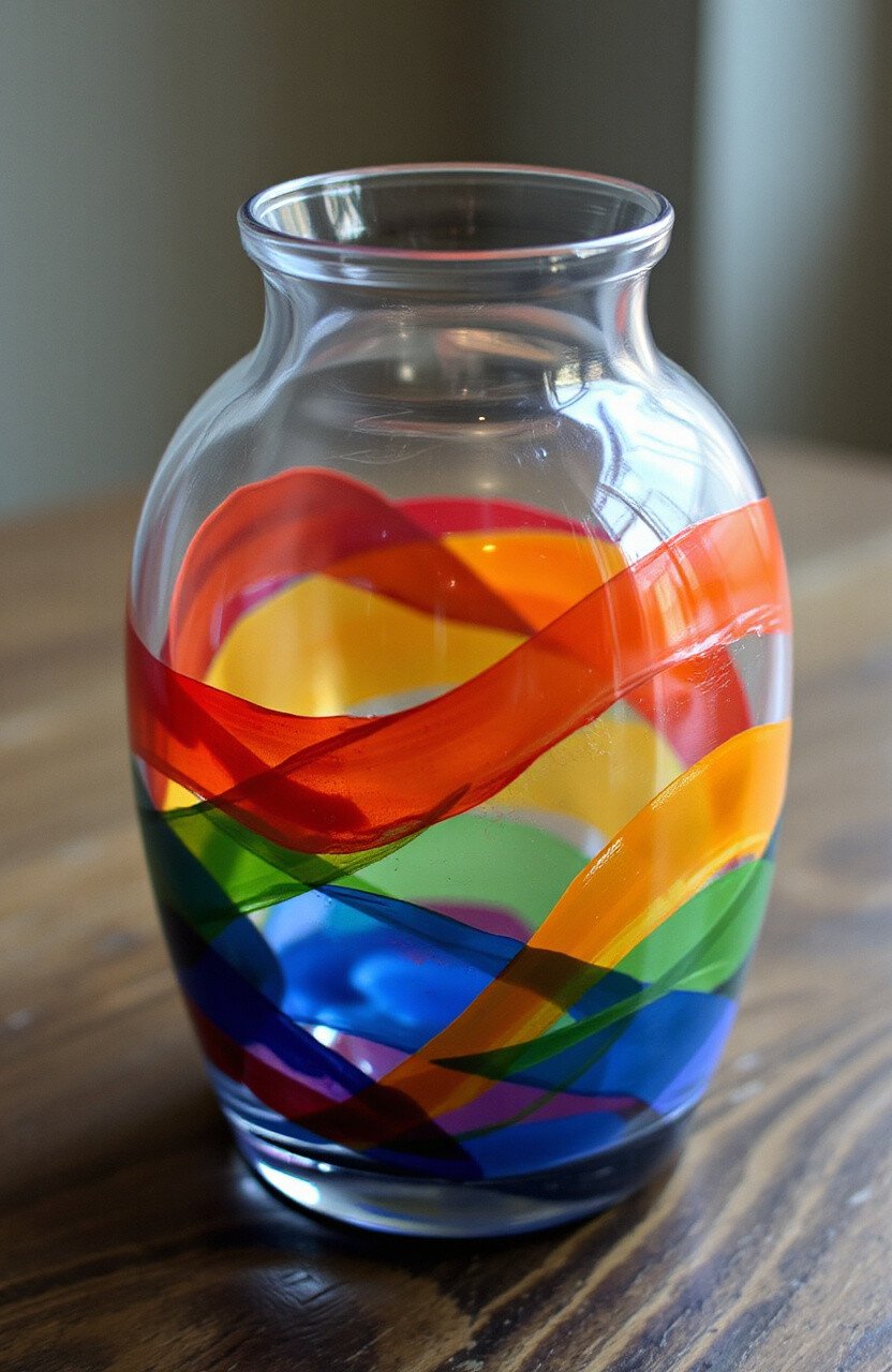 Layer paint on the inside of a glass vase. The light shines through, creating beautiful effects. It’s a stunning centerpiece for any table.