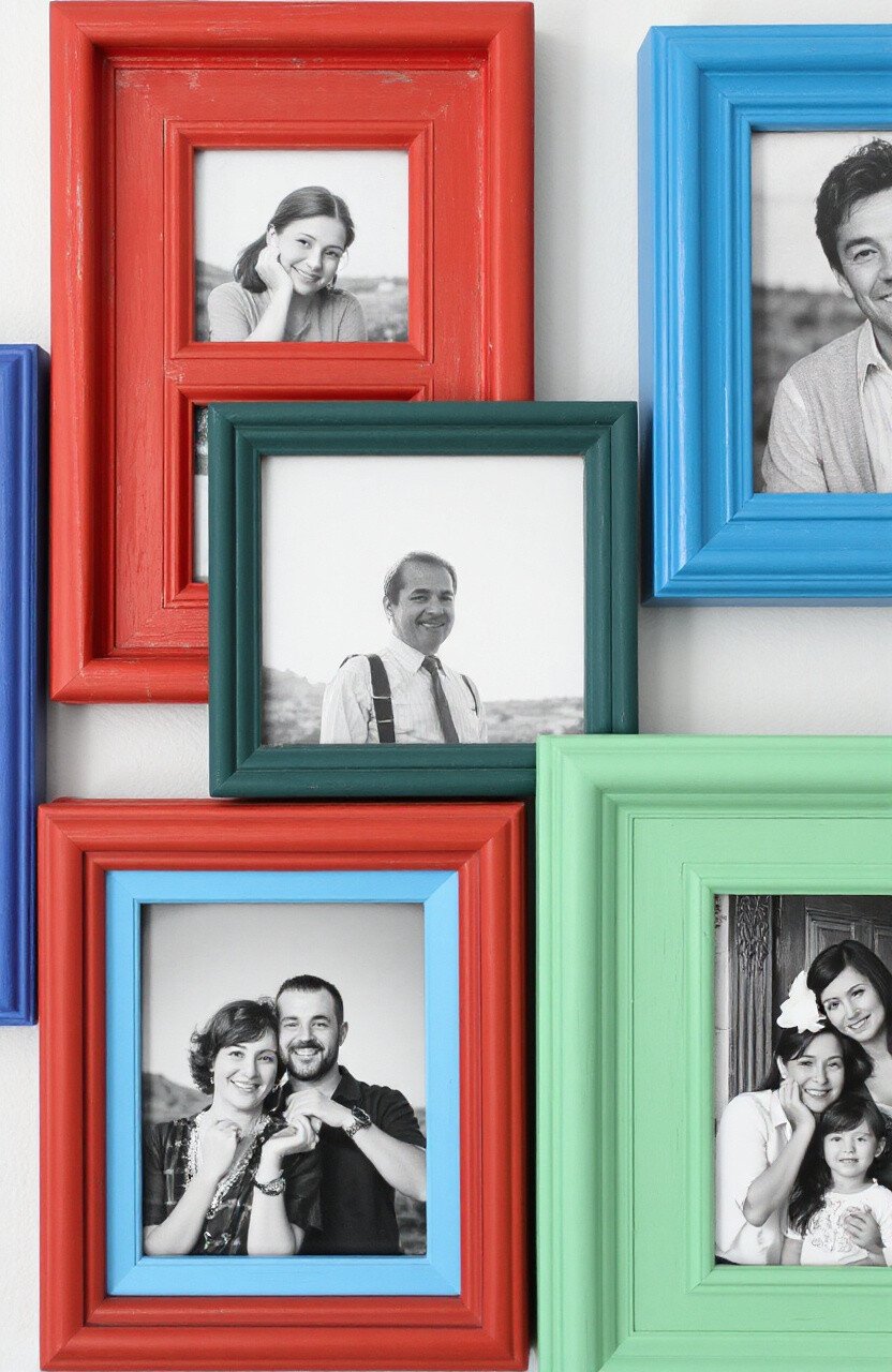 Layer paint on picture frames for a pop of color. It highlights your favorite photos with style. Perfect for creating a gallery wall.