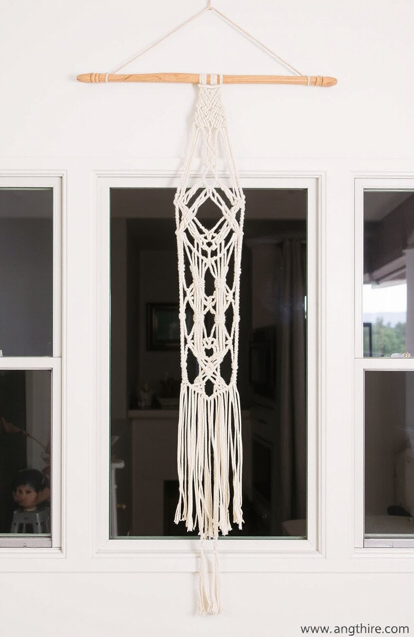 It’s cost-effective and quick to make, ideal for minimalists or those new to macrame. Hang it where it can be appreciated for its subtle elegance. A great way to add a touch of nature to a modern space.
