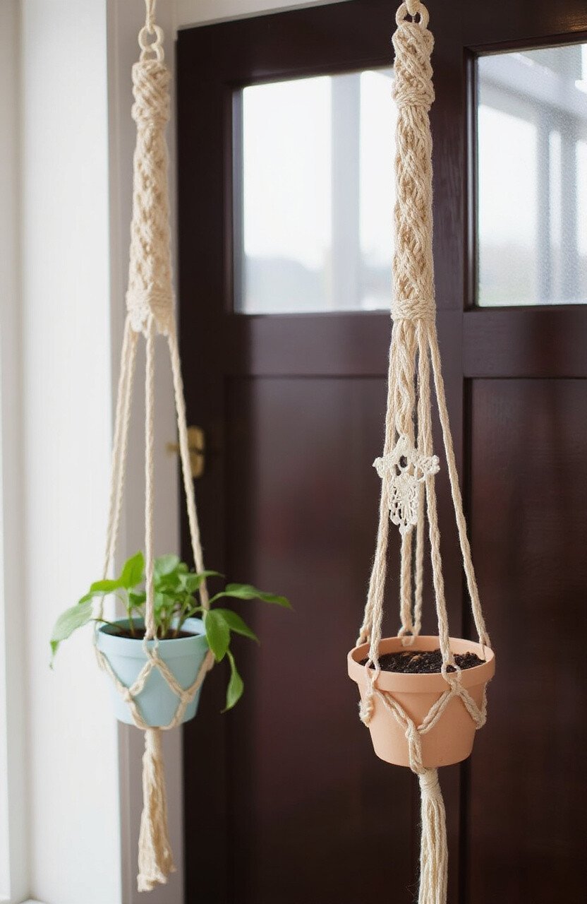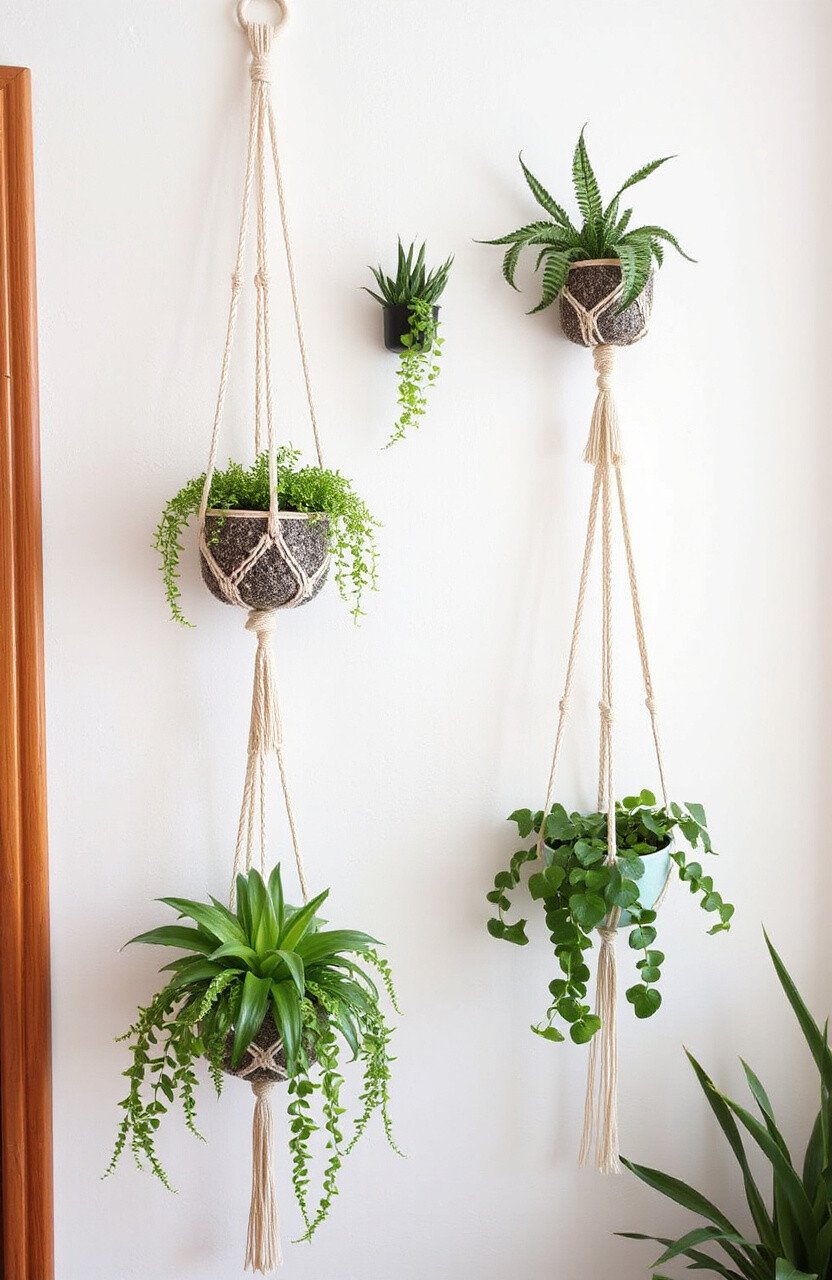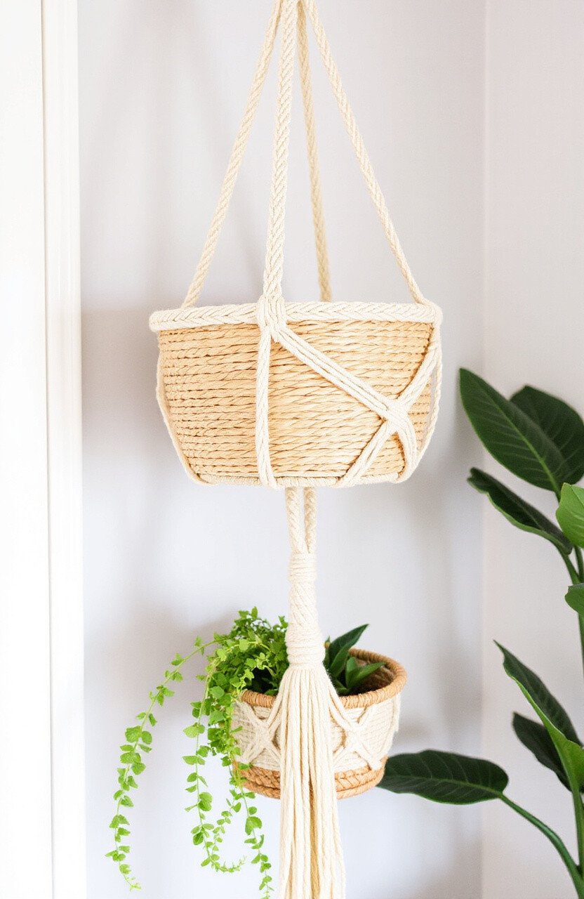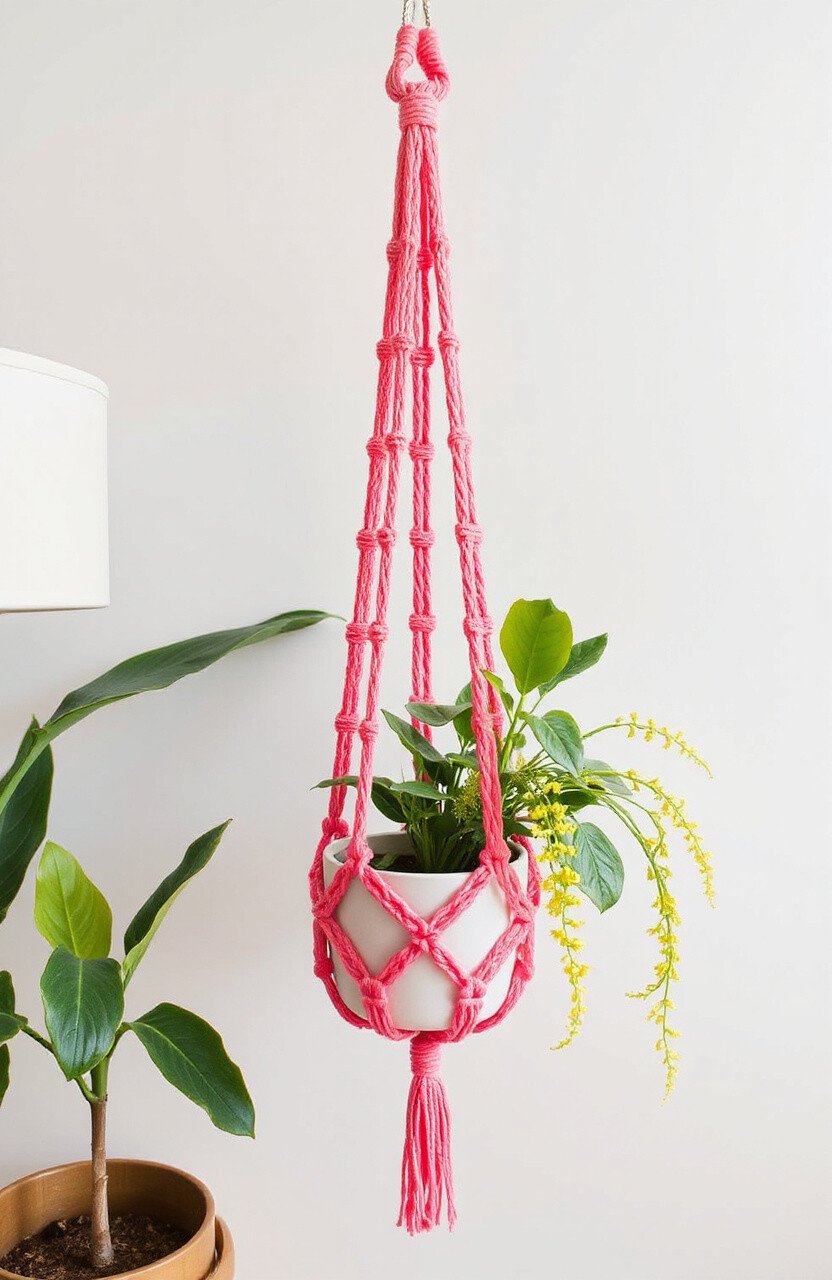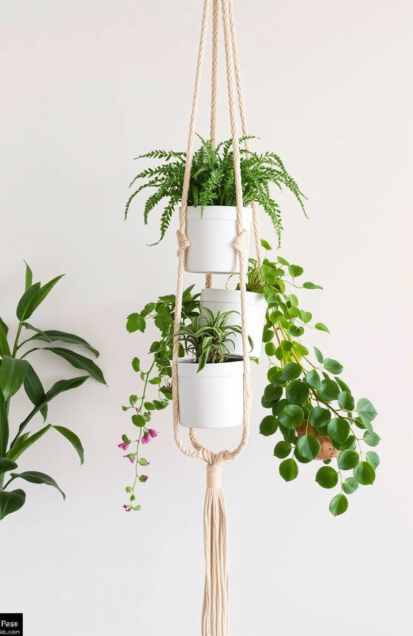 This hanger is both functional and trendy, offering twice the greenery without taking up additional space. Consider using colored cords for an extra pop. It’s a great way to make your home feel lush and alive.