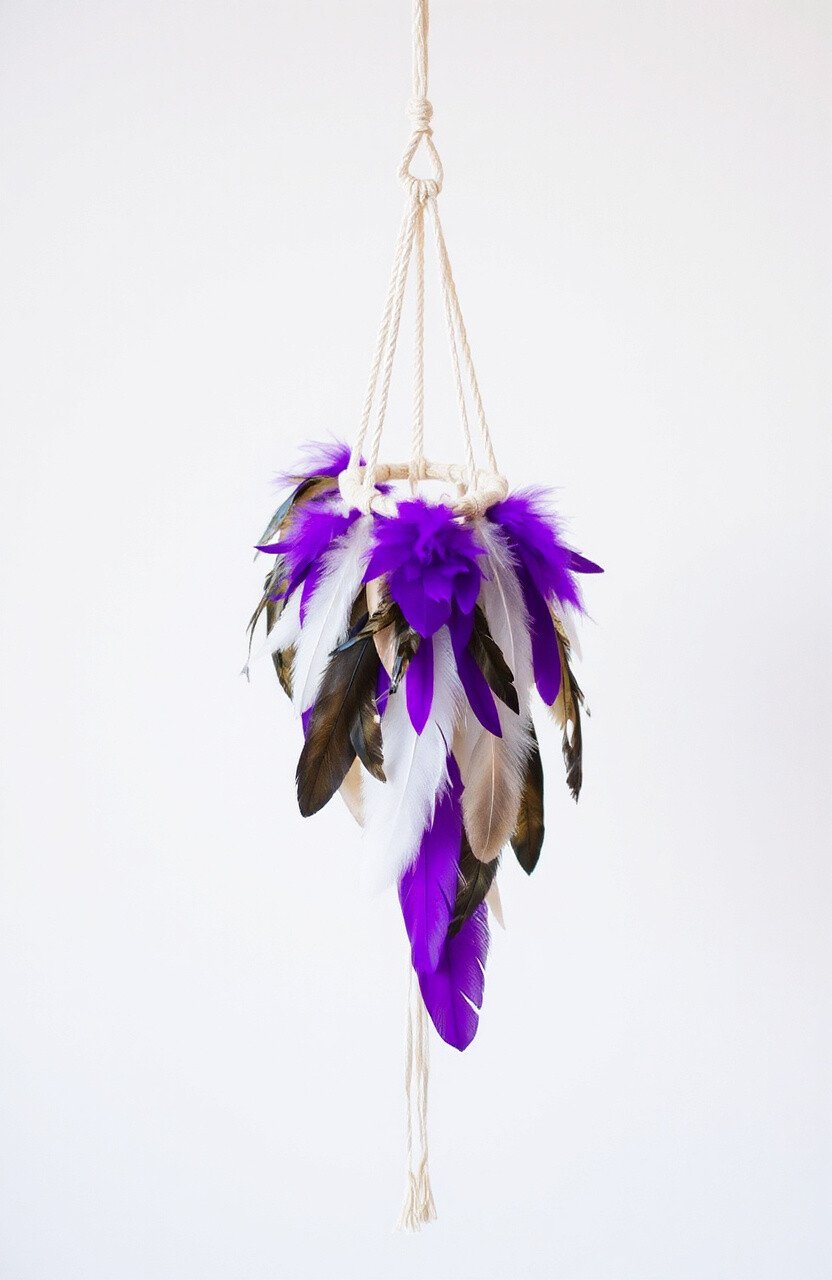 Use feathers and beads for an authentic look. This hanger is both decorative and meaningful, ideal for bedrooms. A dreamy addition to your macrame collection.