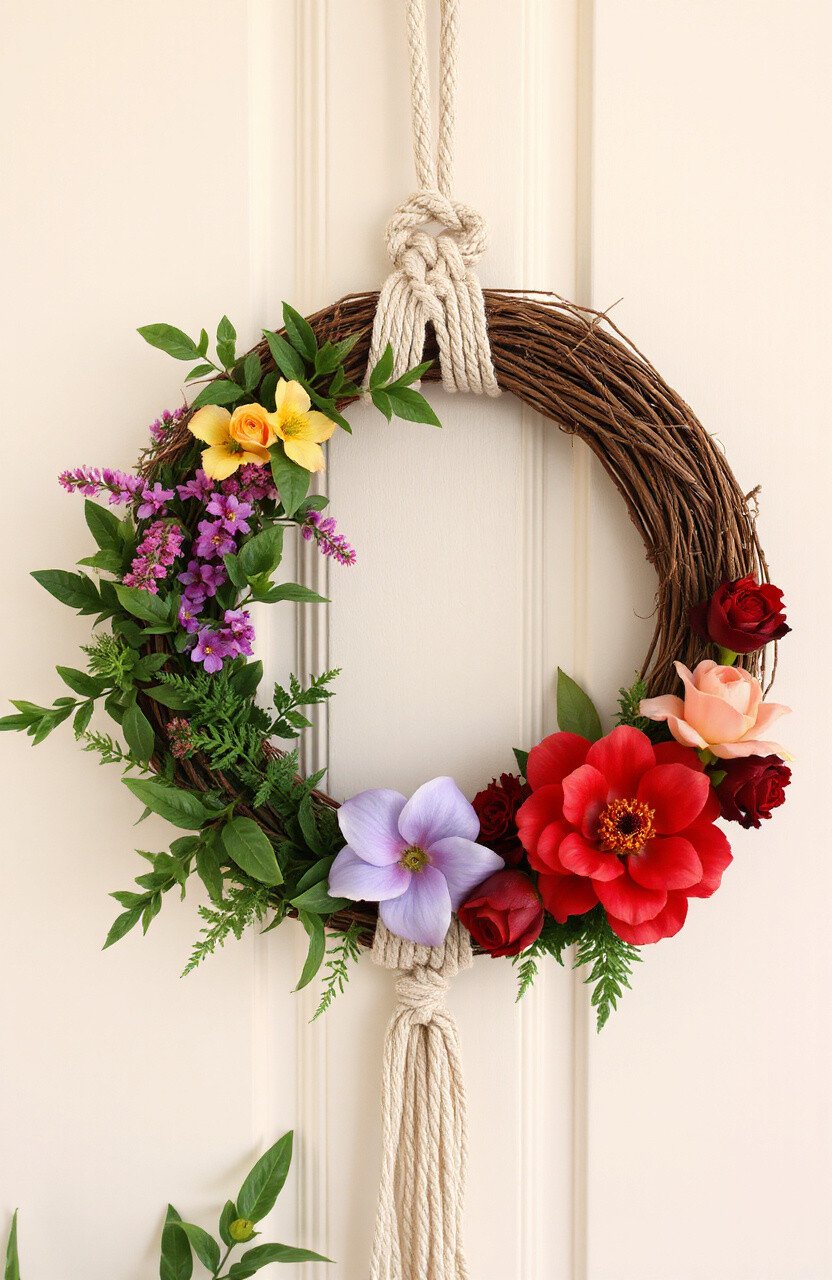 Use seasonal flowers or greenery for a fresh look. This hanger is great for doors or walls, adding a welcoming touch. A lovely way to greet guests with style.