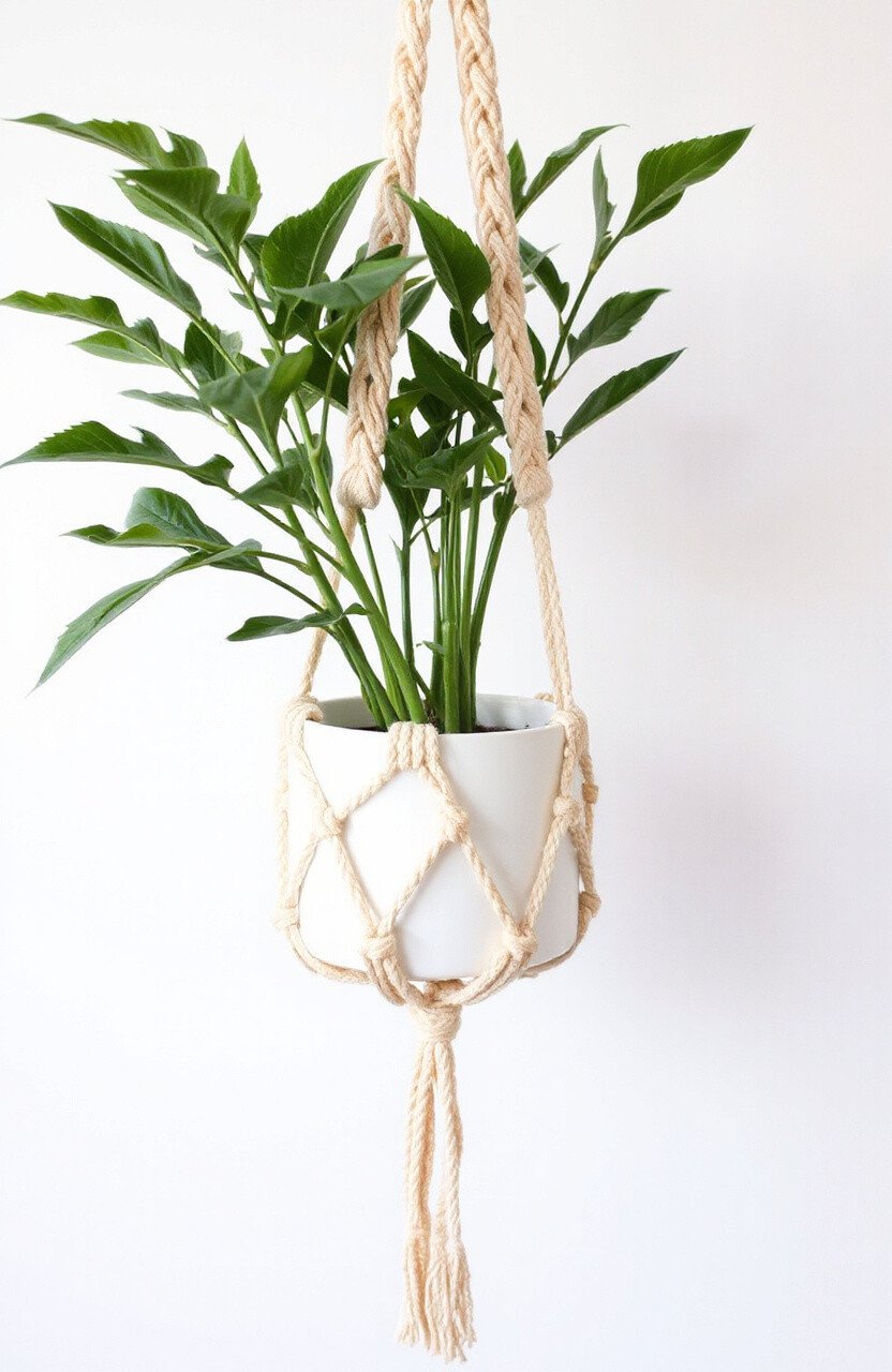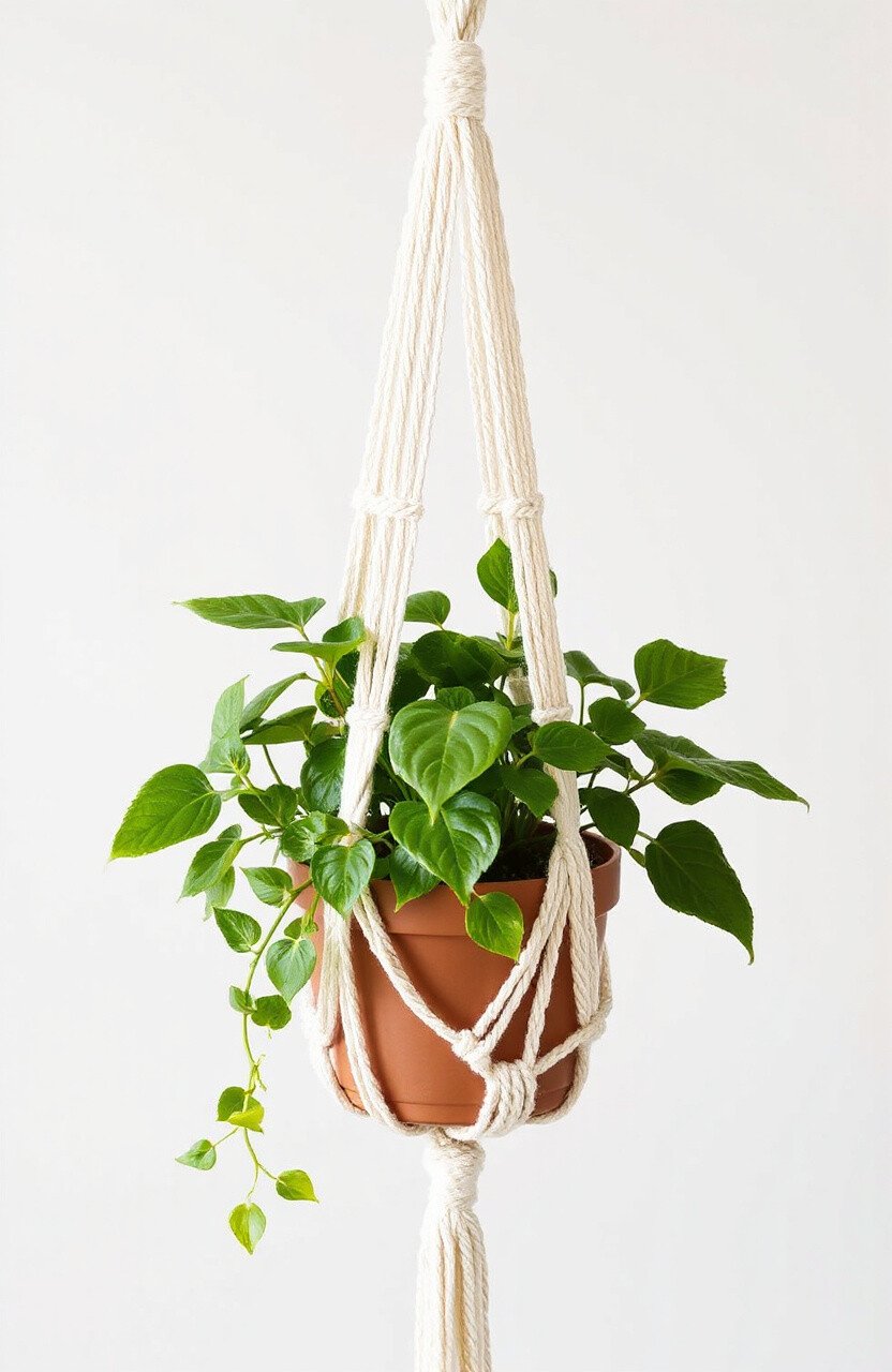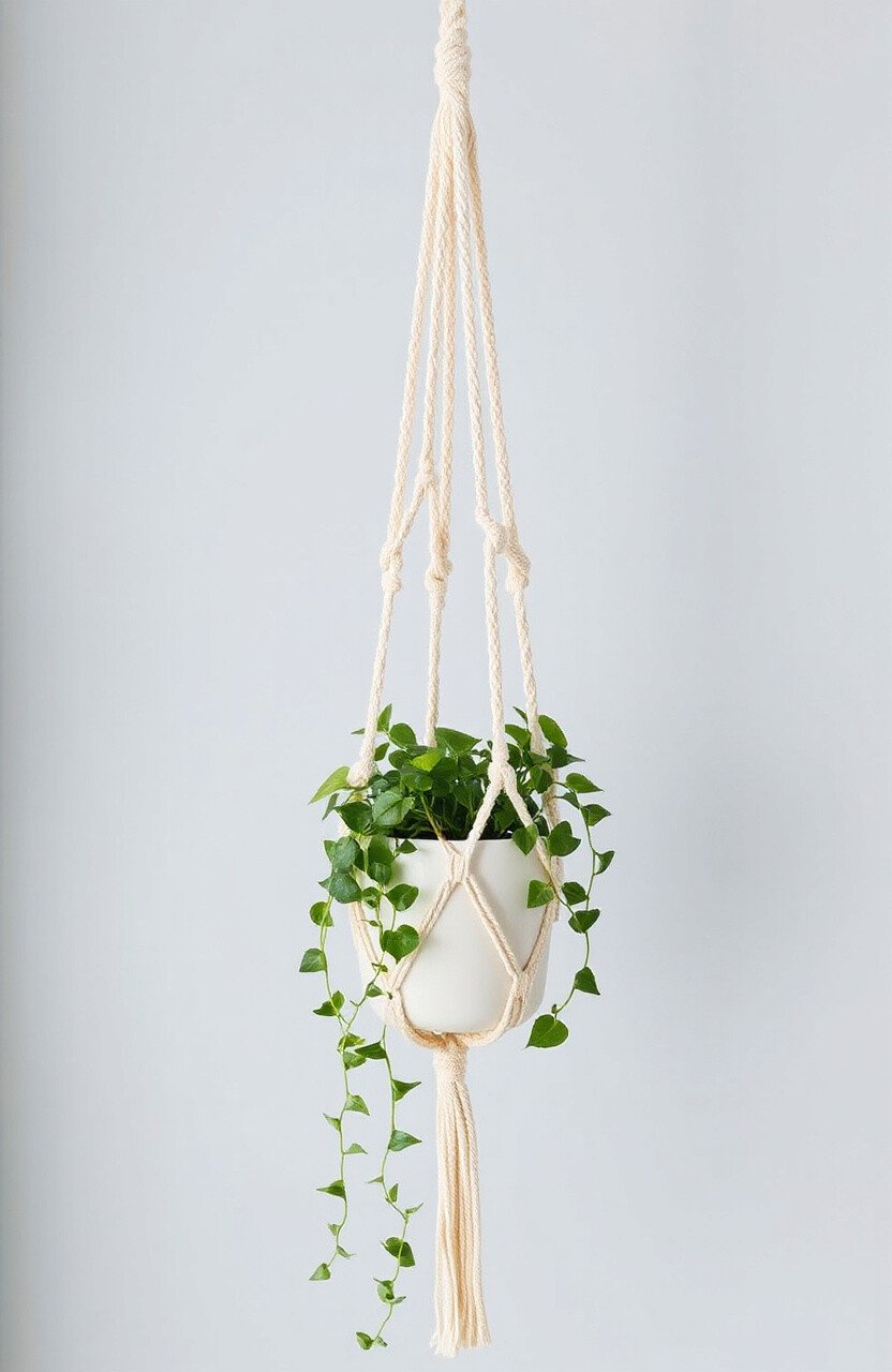 For those who prefer a more understated look, the minimalist macrame hanger is perfect. It uses fewer knots and a clean, simple design to hold the plant pot. This style is all about letting the beauty of the plant shine.