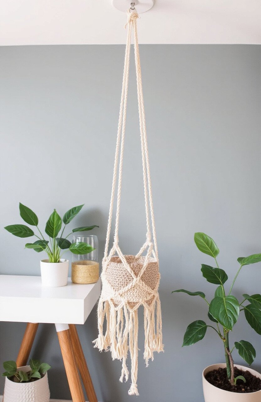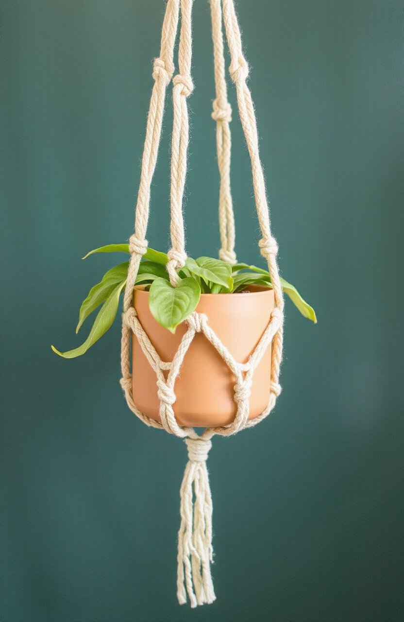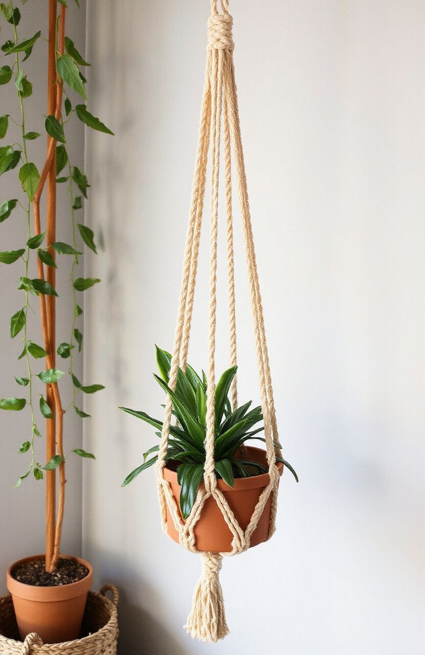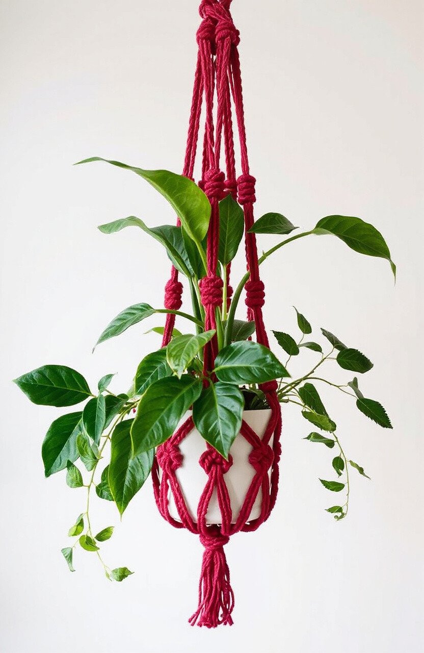For those who prefer a more understated look, the minimalist macrame hanger is perfect. It uses fewer knots and a clean, simple design to hold the plant pot. This style is all about letting the beauty of the plant shine.