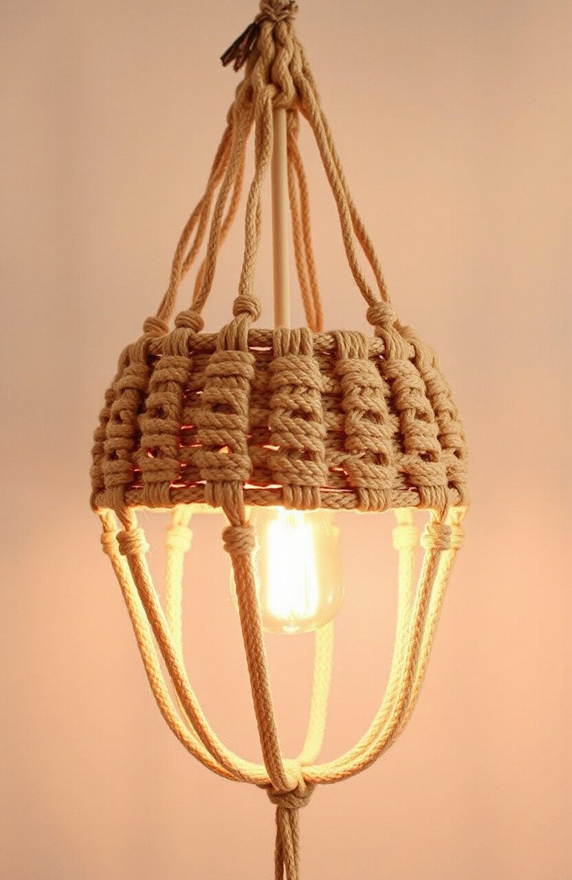 Use colored cords for a fun twist. This hanger is both eco-friendly and stylish, perfect for creating cozy lighting. A creative way to add ambience to your home.