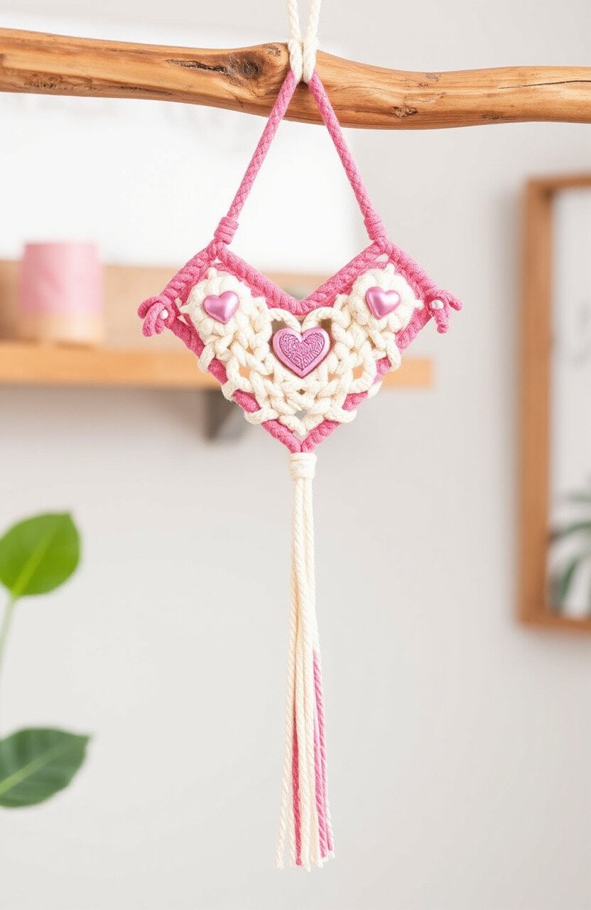 26. Heart-Shaped Macrame Hanger