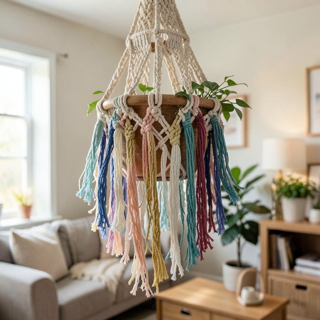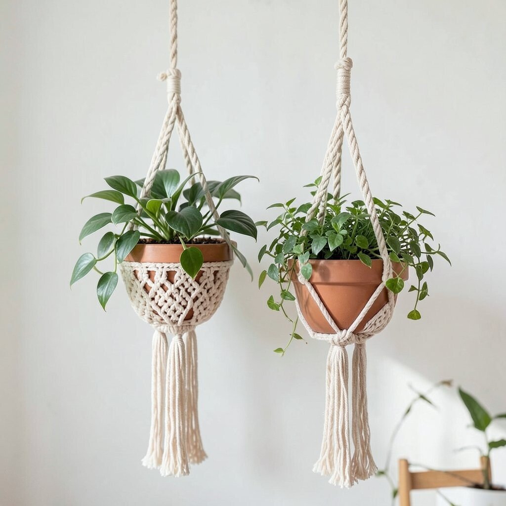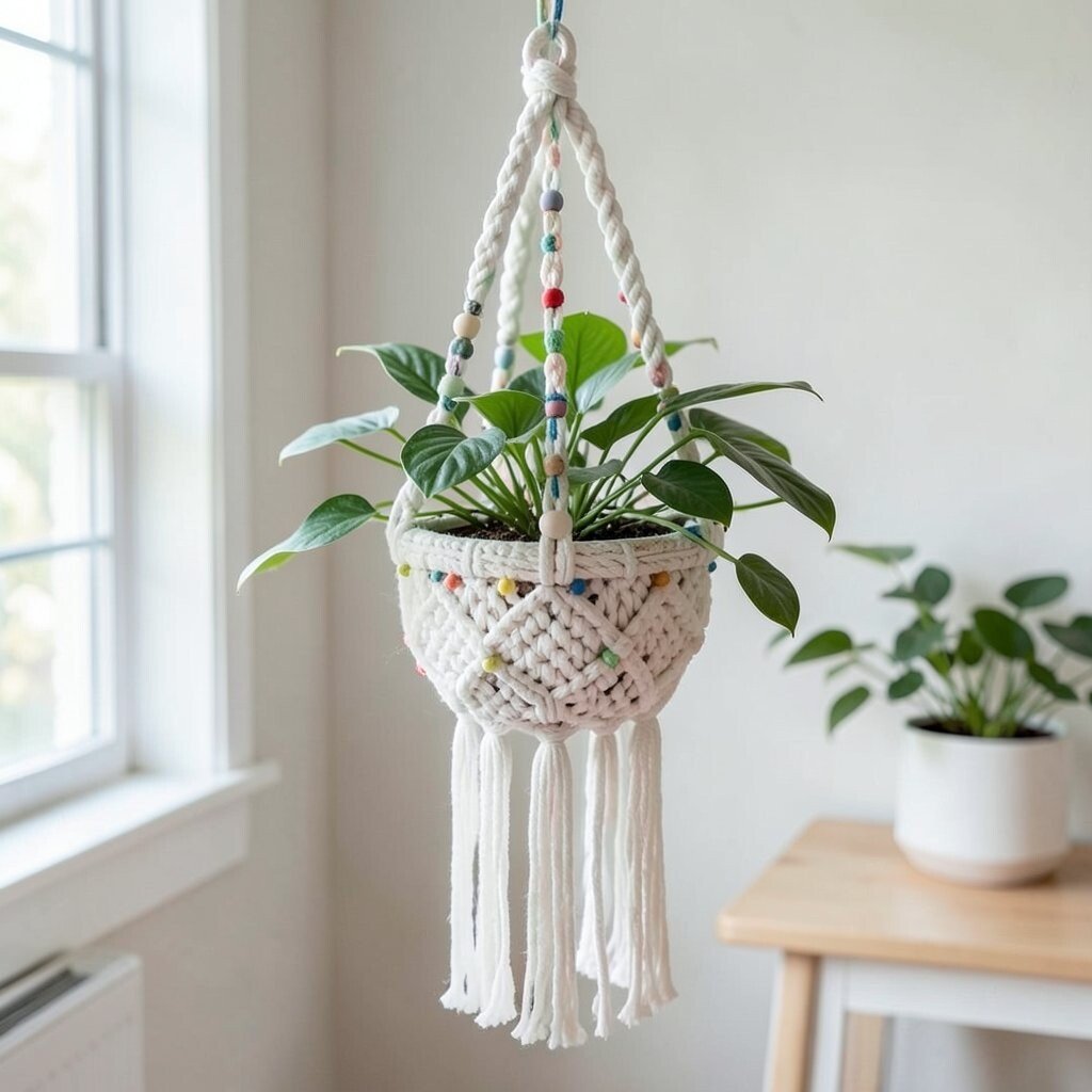 These hangers are perfect for beginners. You can personalize them by adding beads or colorful threads. Affordable and easy to make, they are a cost-effective way to start your macrame journey.