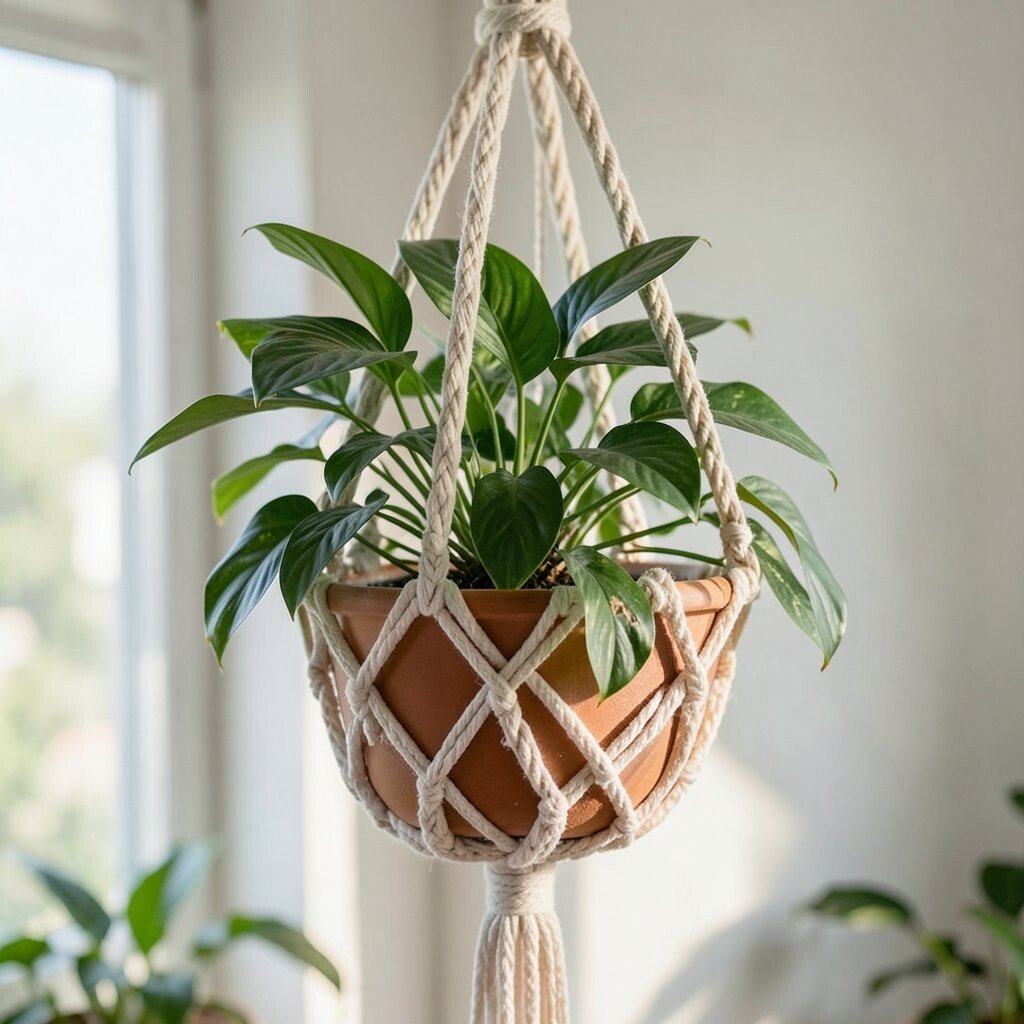 For those who love simplicity, a minimalist macrame hanger is perfect. With clean lines and a sleek design, it blends seamlessly into modern decor. This style is perfect for highlighting the beauty of the plants themselves.