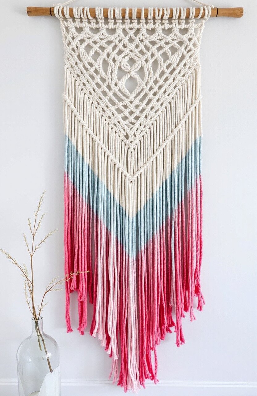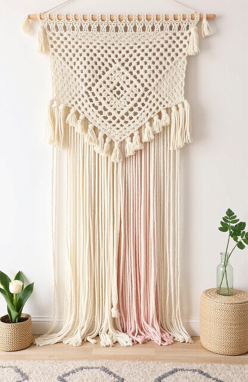 Imagine a wall hanging where colors seamlessly blend into each other, creating a dreamy ombre effect. This piece is all about soothing transitions and can be a beautiful focal point in any room.