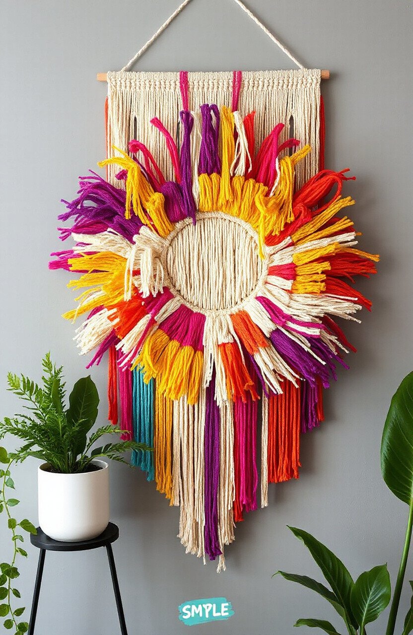 Fringe is fun, and lots of it makes for an explosive wall hanging that’s full of life. This design is all about embracing texture and movement.