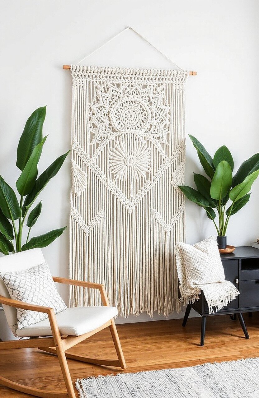 Chevron patterns are a classic, and in macrame, they add a wonderful texture. This design is both dynamic and stylish.