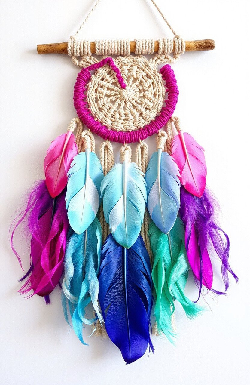 Feathers bring a light, airy feel to any design. A macrame wall hanging with feather motifs is perfect for creating a bohemian vibe.