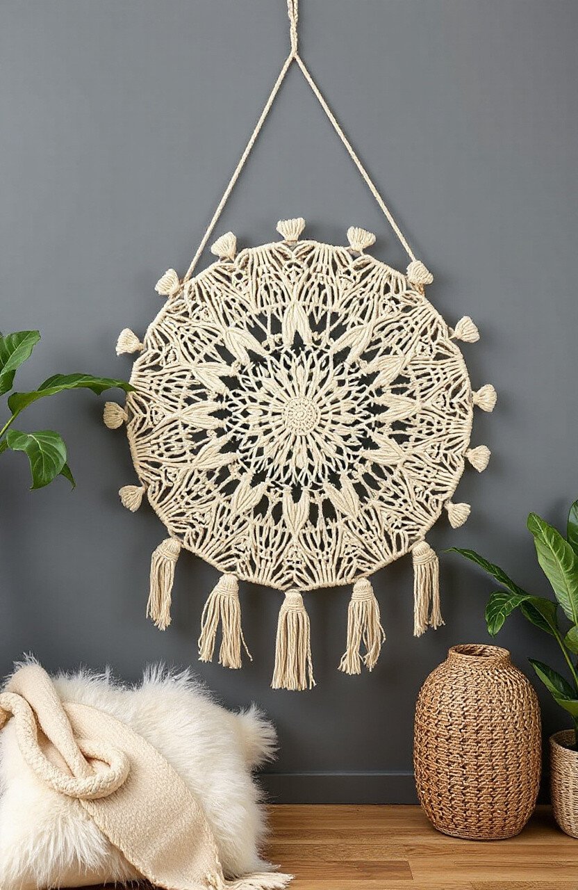 Who can resist the playful charm of tassels? A macrame wall hanging adorned with tassels adds a whimsical touch to any room. It’s a fun and lively addition that’s sure to bring smiles.