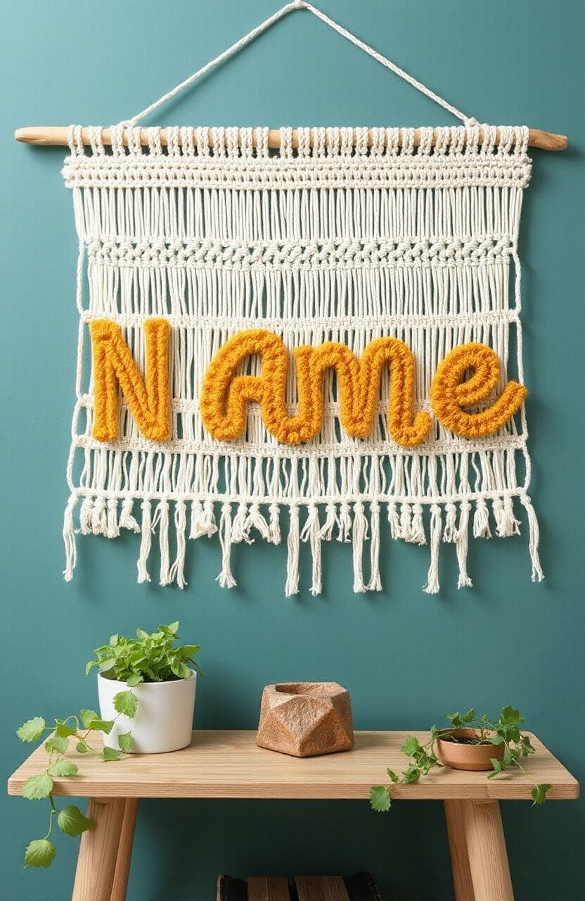 Why not add a personal touch with macrame name art? Create a wall hanging that spells out your name or a meaningful word.