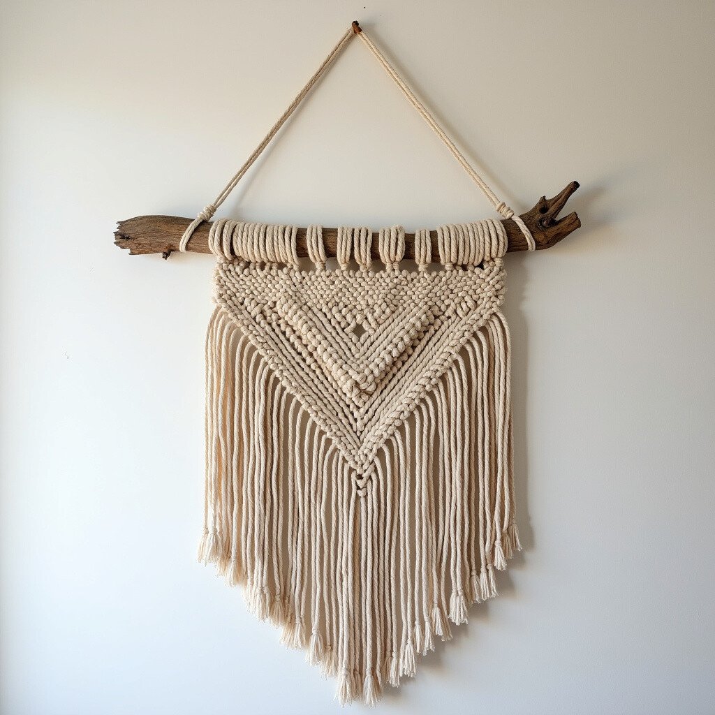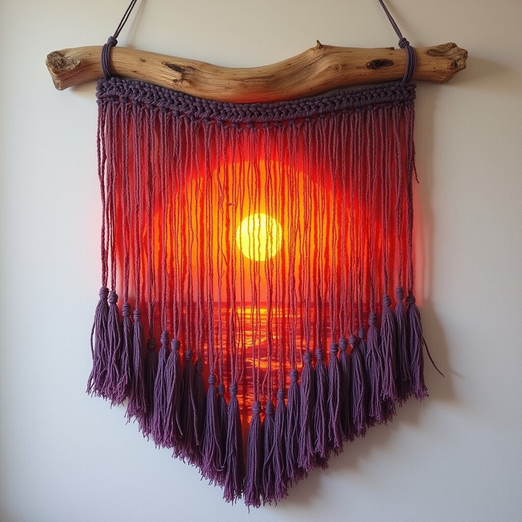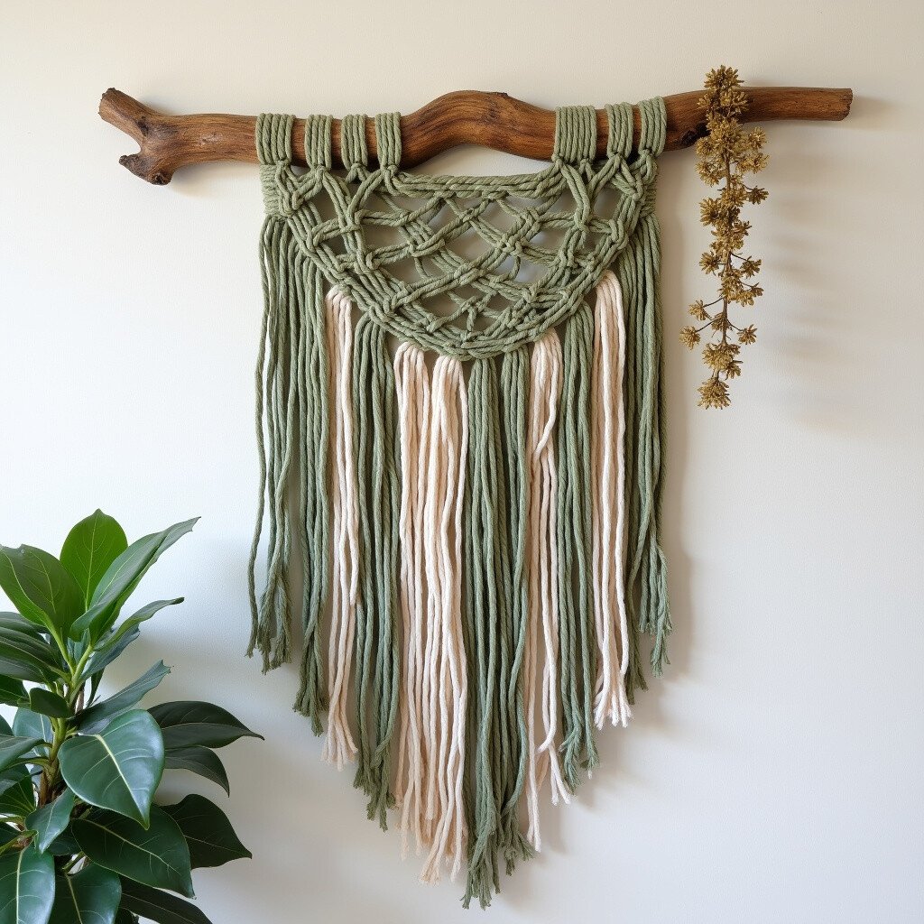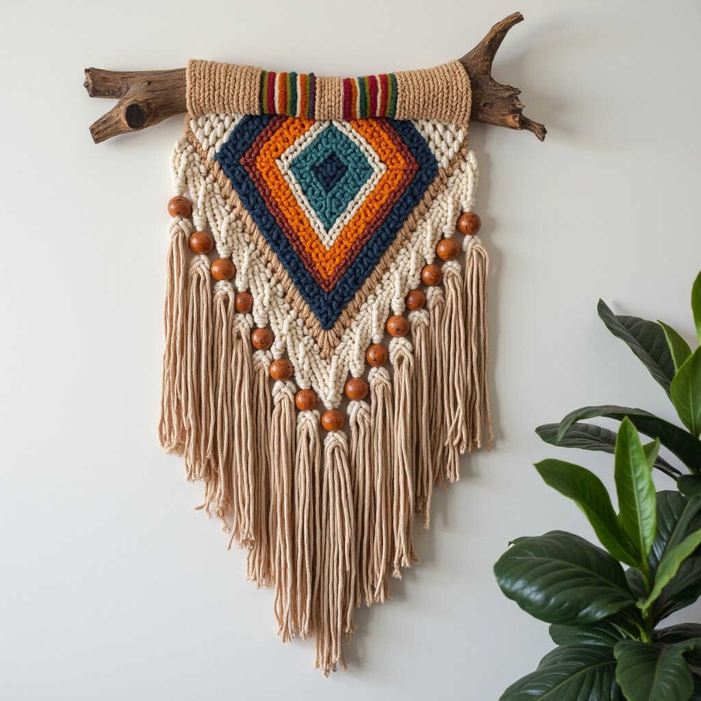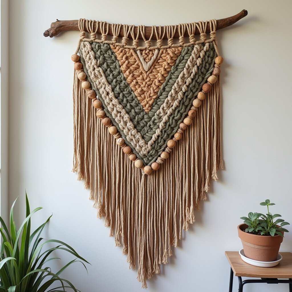Great for cozy living spaces, this piece adds warmth and depth. Consider adding wooden beads or small stones. It’s like a warm embrace from the earth.
