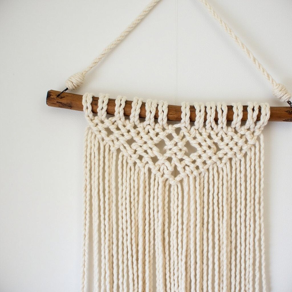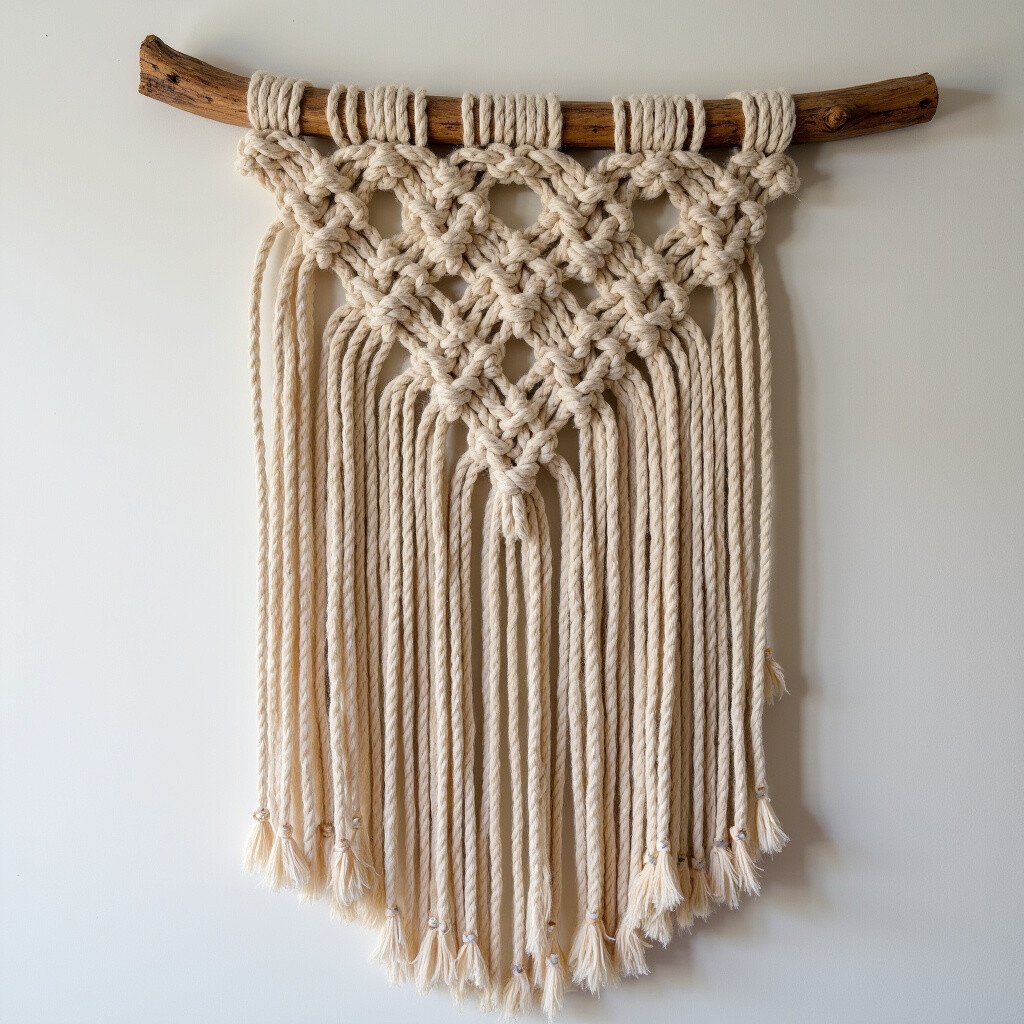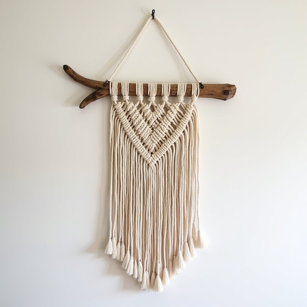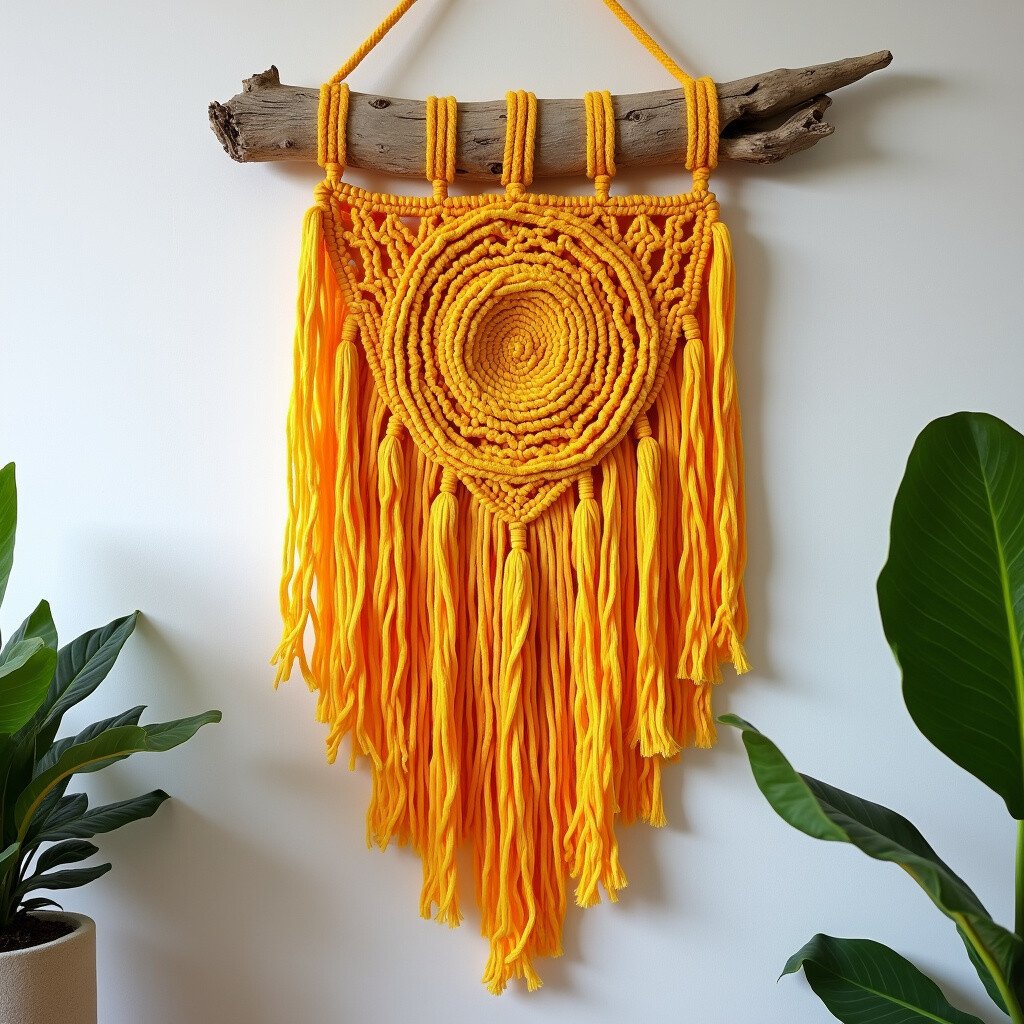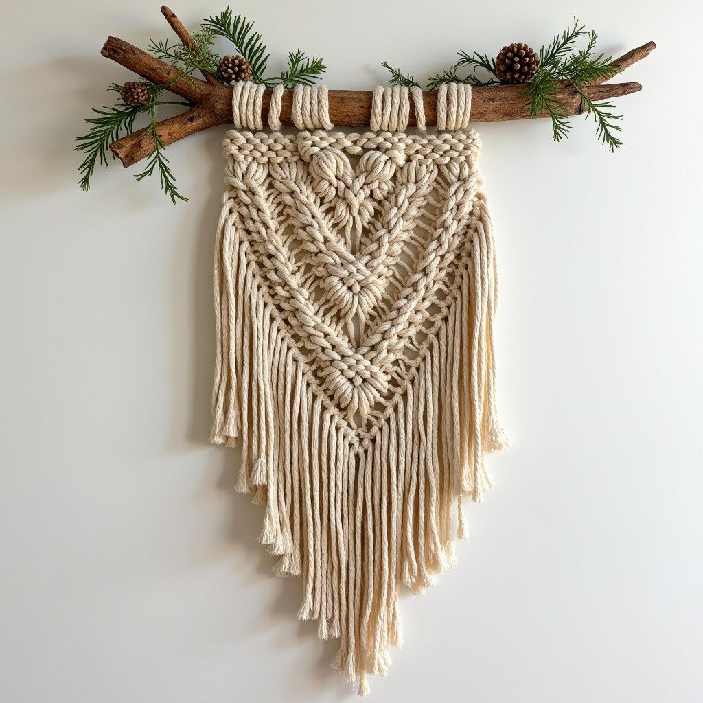 Great for cozy living spaces, this piece adds warmth and depth. Consider adding wooden beads or small stones. It’s like a warm embrace from the earth.