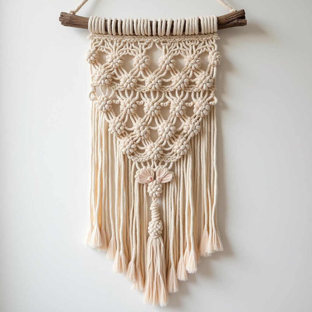 Perfect for a cozy reading nook or a romantic bedroom, this macrame adds a touch of nostalgia. Enhance its charm with lace or antique buttons. It’s like a gentle hug from the past, bringing warmth and love to your space.