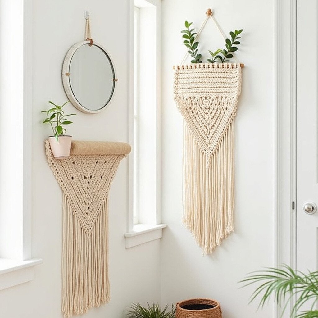 Keep your essentials handy with a macrame wall pocket. This practical yet beautiful piece is perfect for storing mail, keys, or small decor items. It’s an excellent addition to an entryway or kitchen, adding both style and functionality.