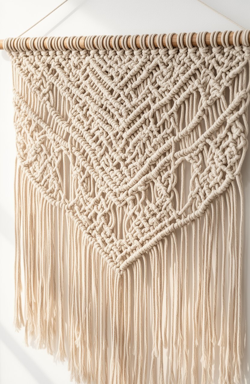 For something modern and stylish, geometric macrame art is the way to go. This design focuses on clean shapes and lines, adding a contemporary edge to the traditional craft. It’s ideal for a modern home or office space.