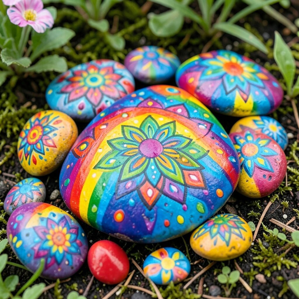 Imagine walking through your garden and spotting little bursts of color and design that not only captivate the eye but also warm the heart. These are no ordinary stones; they’re tiny canvases of joy. Little surprises await in each piece, promising to bring a smile to anyone who sees them.
