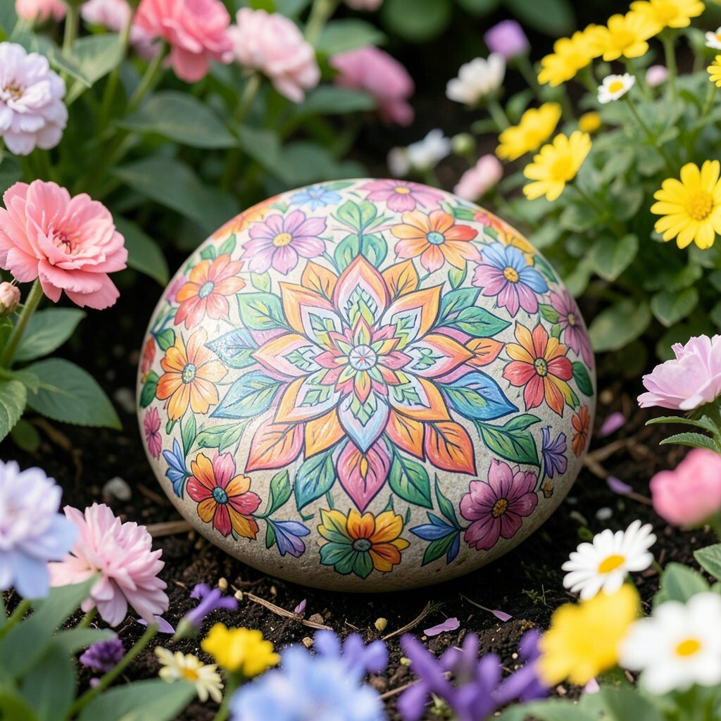 This stone is a bouquet of colors. With intricate floral patterns, it celebrates the beauty of flowers. Each petal is carefully painted, creating a symphony of design and color.