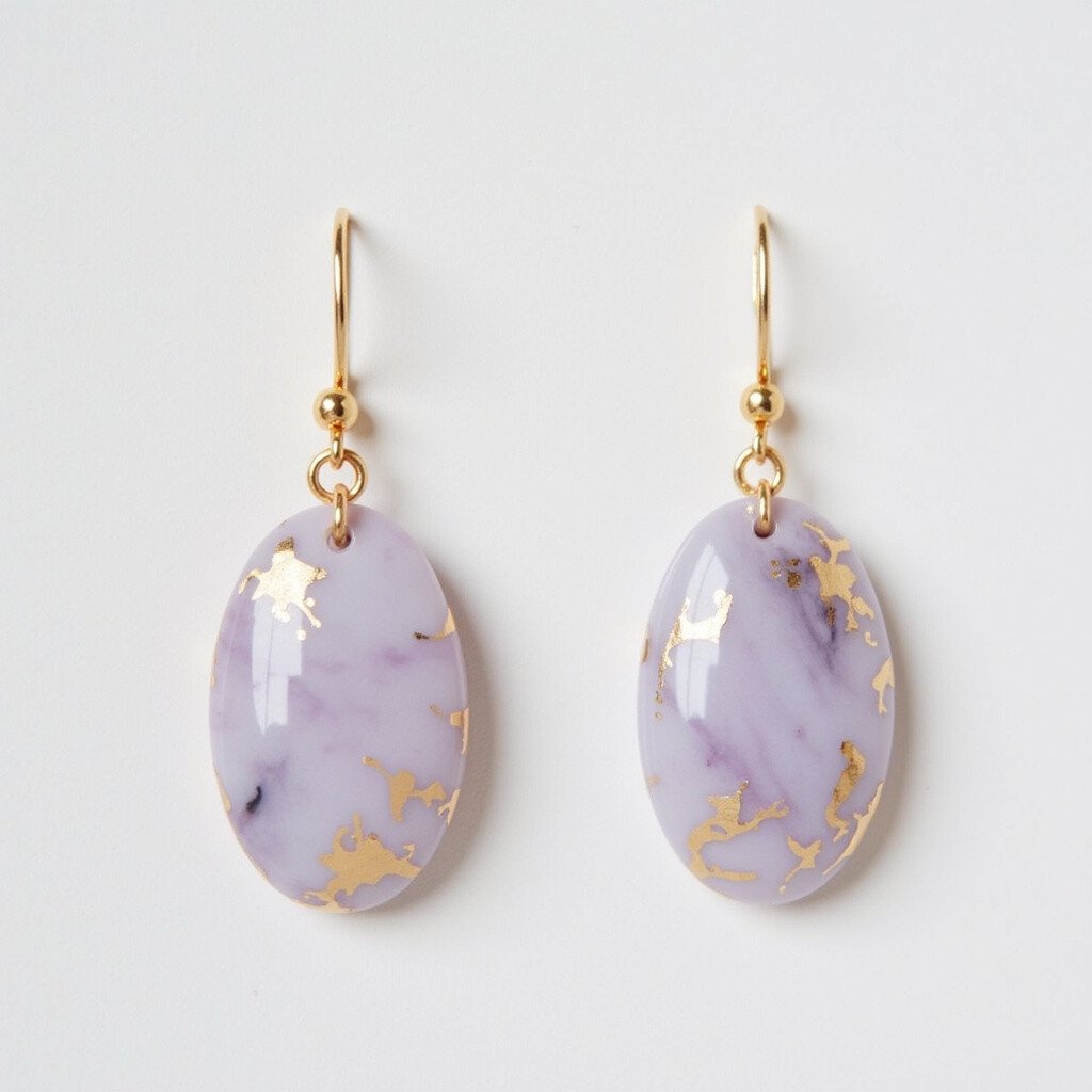 Lavender marble with gold foil brings a touch of whimsy to your accessories. These earrings are dreamy and gentle.
