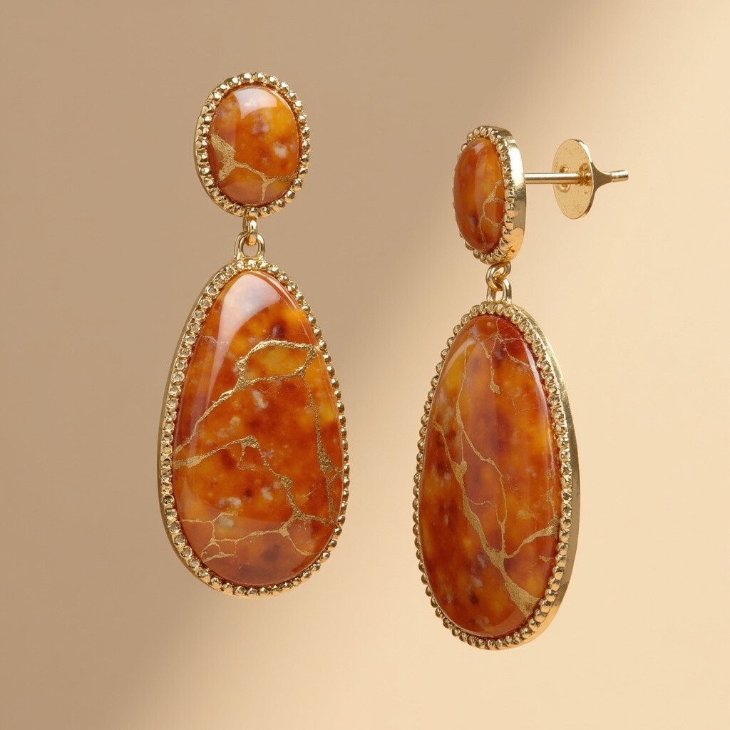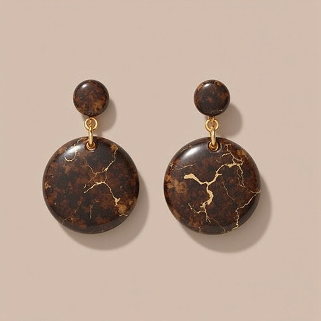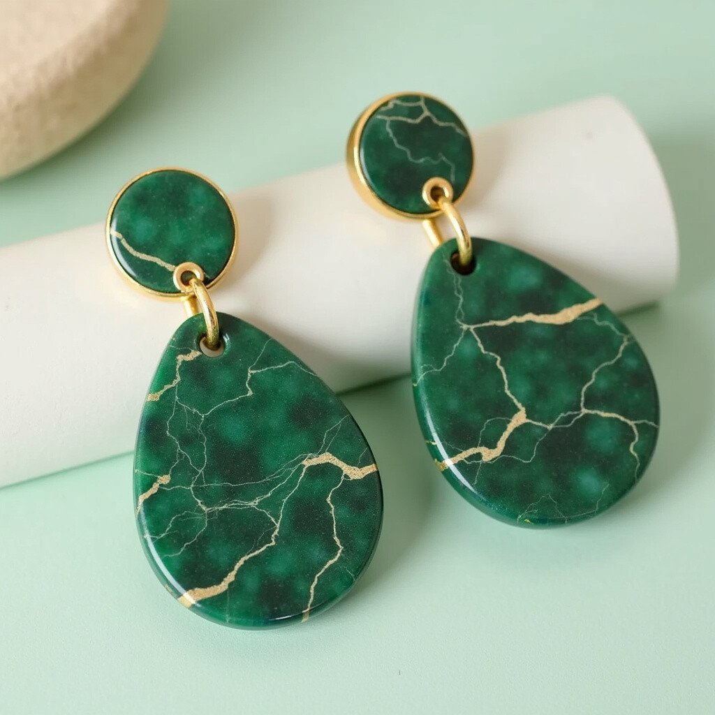 For nature lovers, green marble earrings with gold foil capture the essence of a lush forest. These earrings are like wearing a piece of nature’s art.