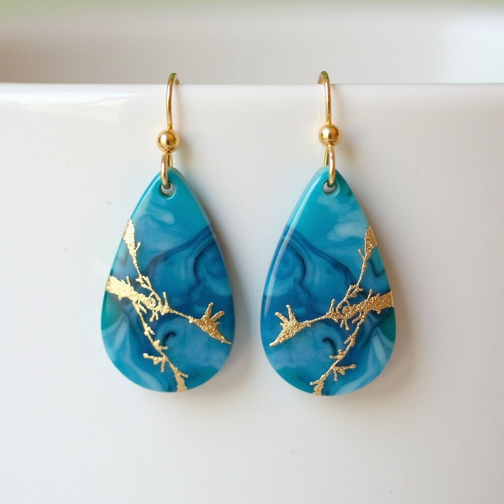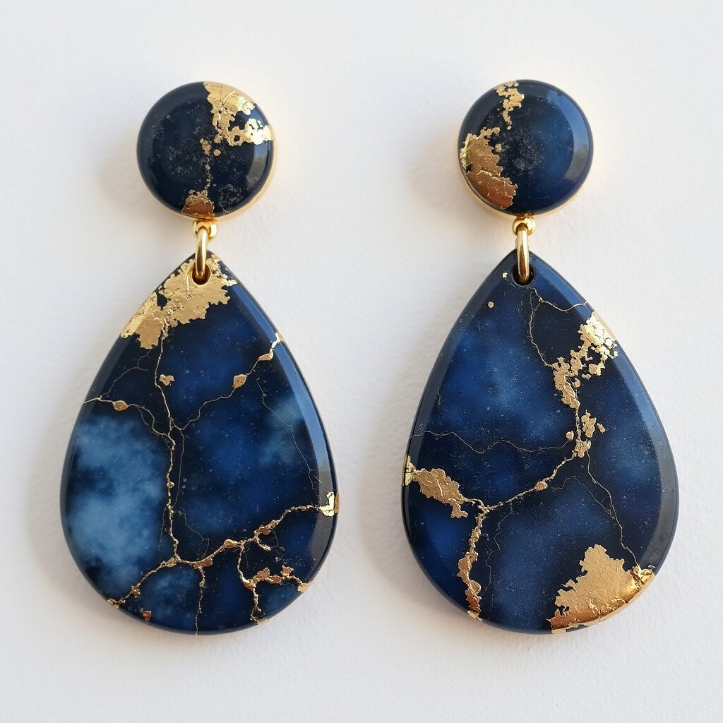 Imagine swirling blue marble with delicate gold foil. These earrings bring the ocean’s mystery right to your ears. Perfect for casual outings or special events, they add a splash of color while remaining subtle.